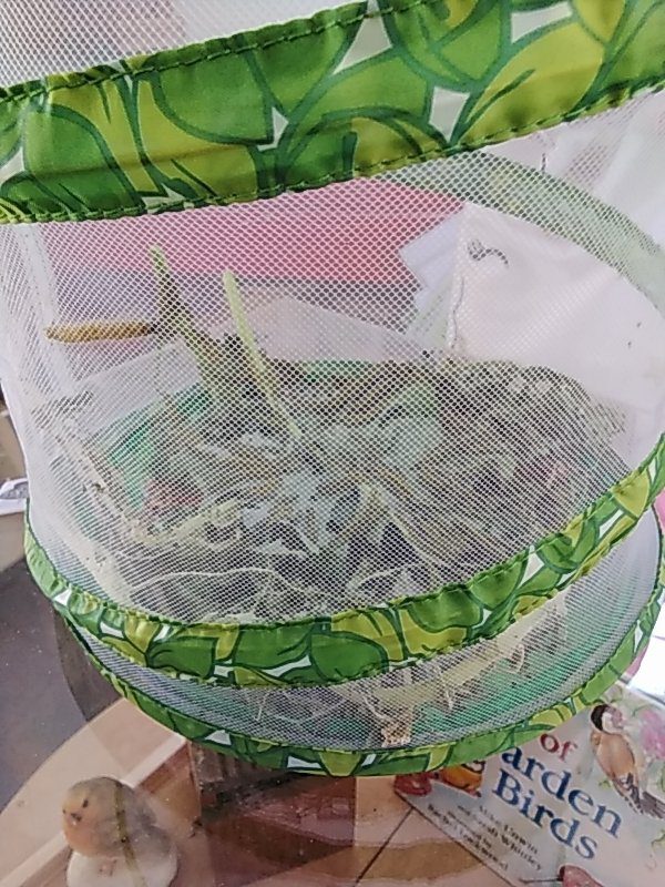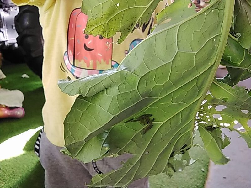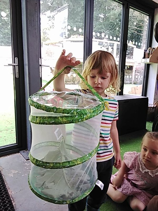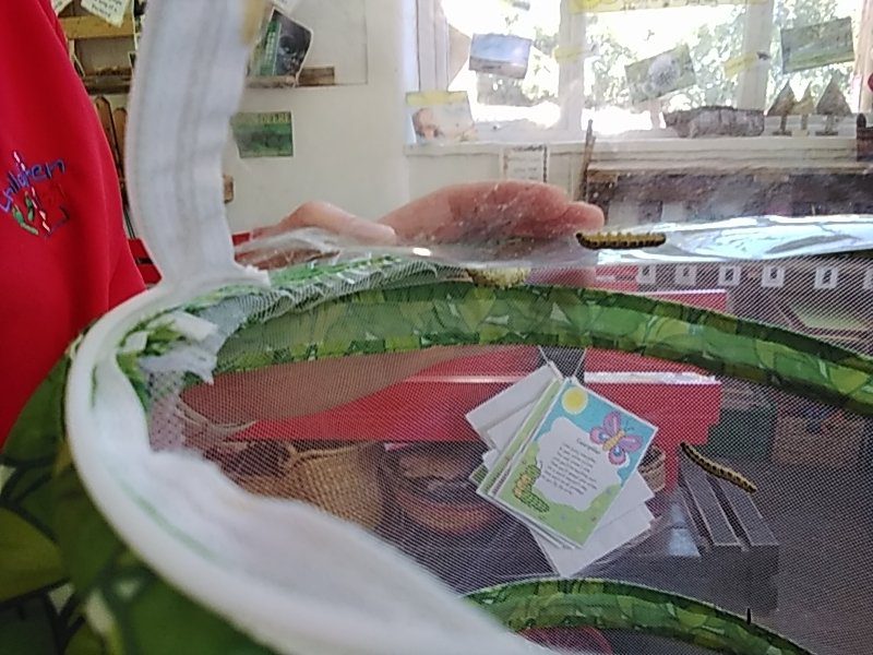 During one of our regular visits to the allotment the children noticed some caterpillars munching on the leaves of one of our plants. They got our butterfly house and put some in and have been busy observing them over the week and have noticed how much bigger they have got.