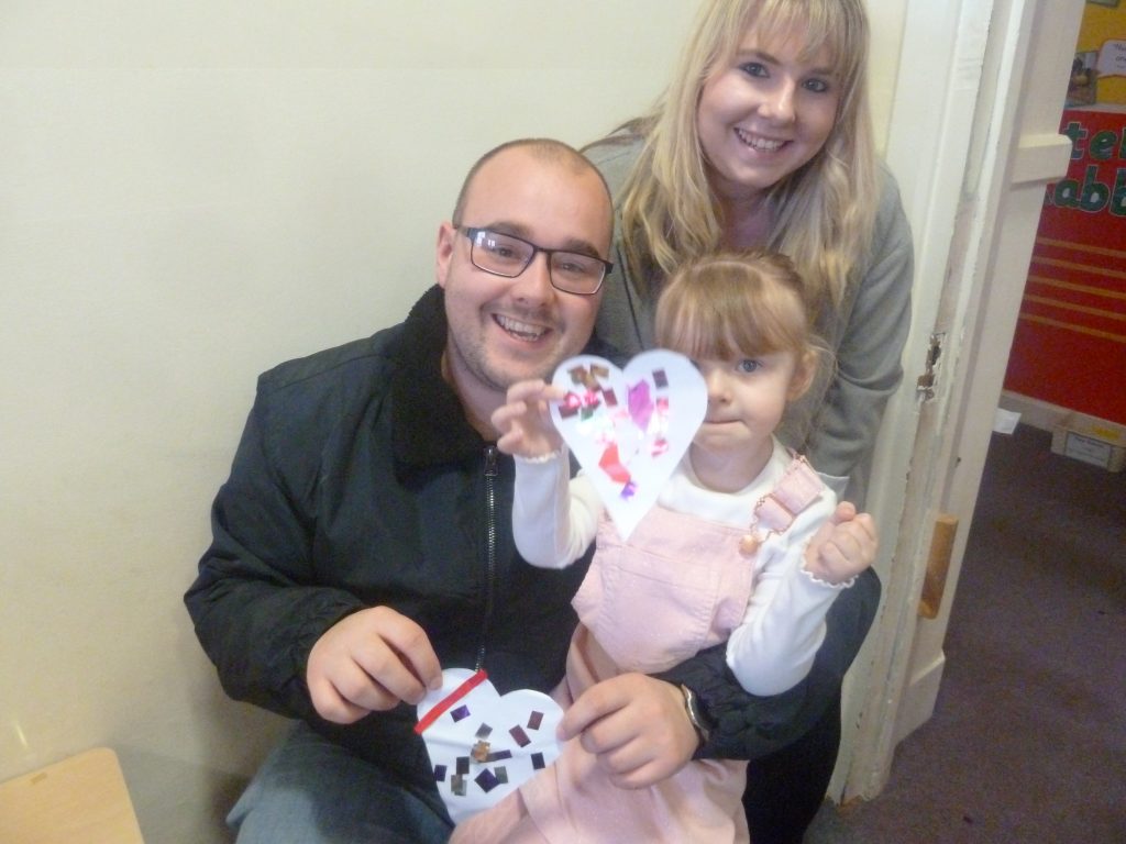 We shared activities such as building, reading stories, playing in the Valentine’s themed play dough and gluing and sticking.