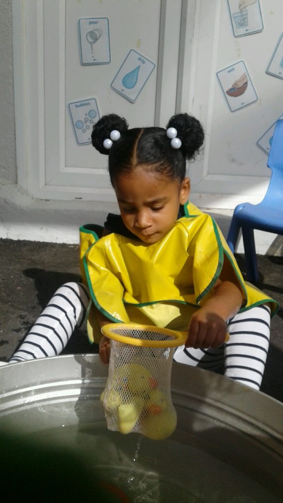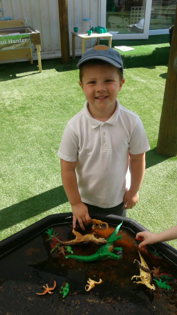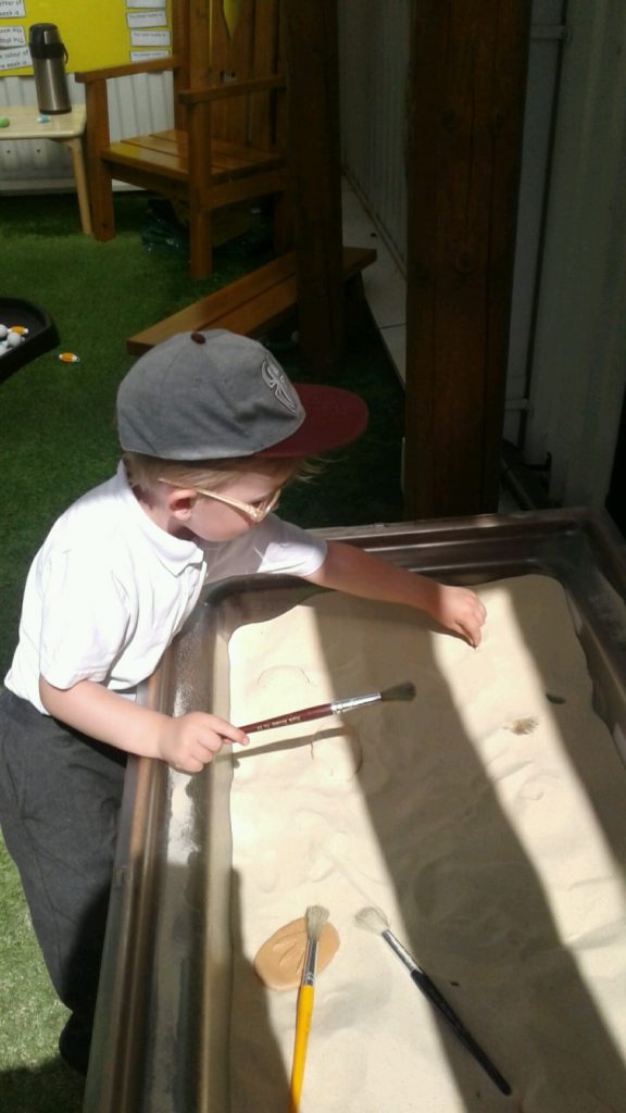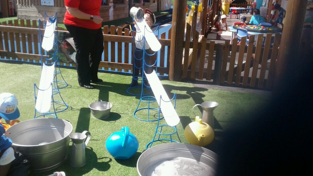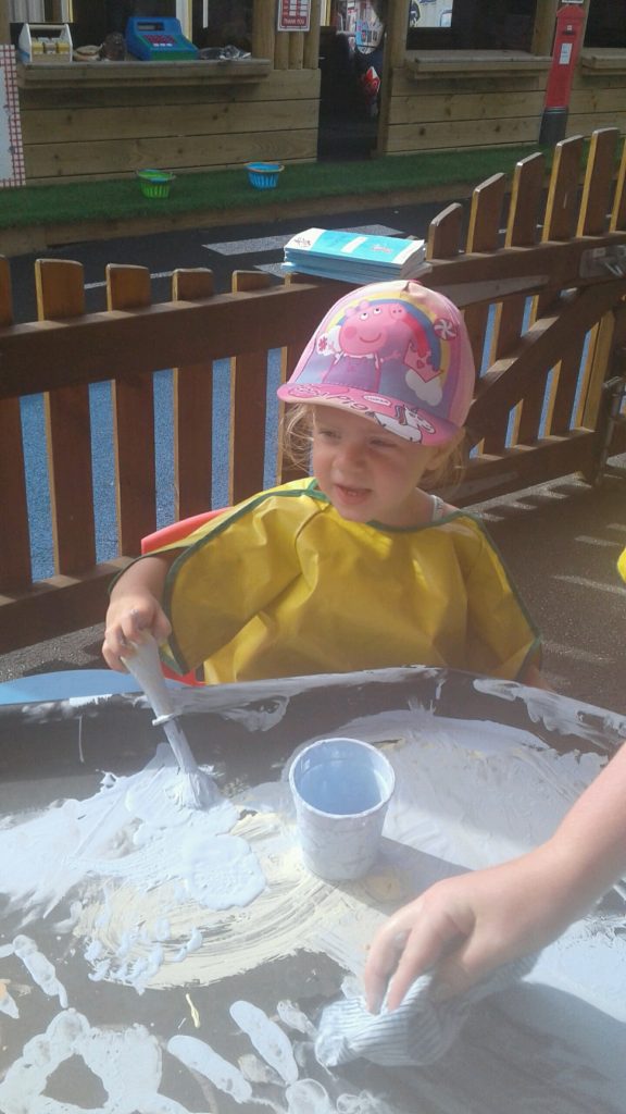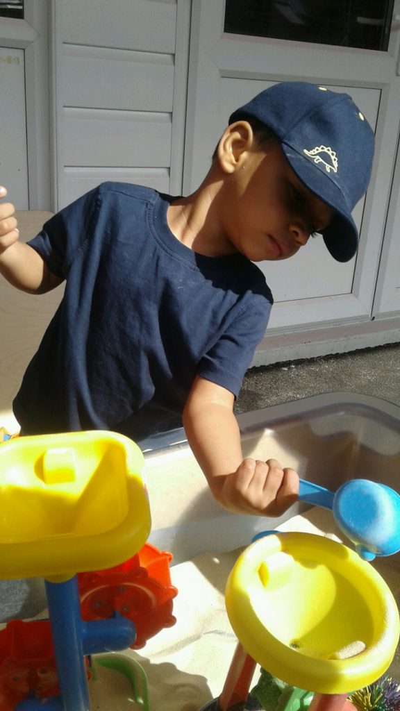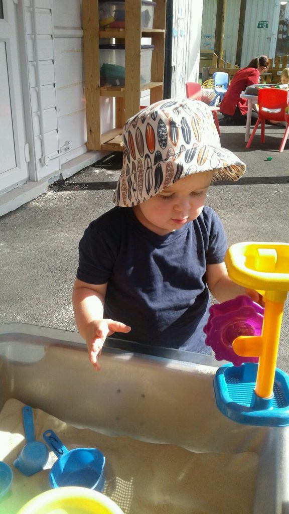 Covered in suncream and wearing their sunhats or playing safely in the shade, the children have enjoyed exploring sand and water activities in the garden.