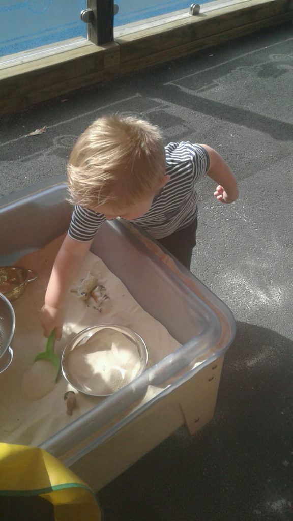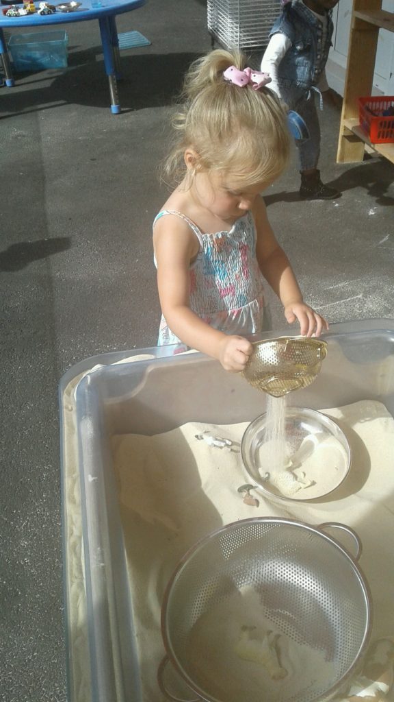 They have been filling and pouring and watching how the sand moves through the sand wheels and sieves.