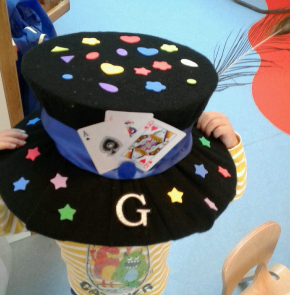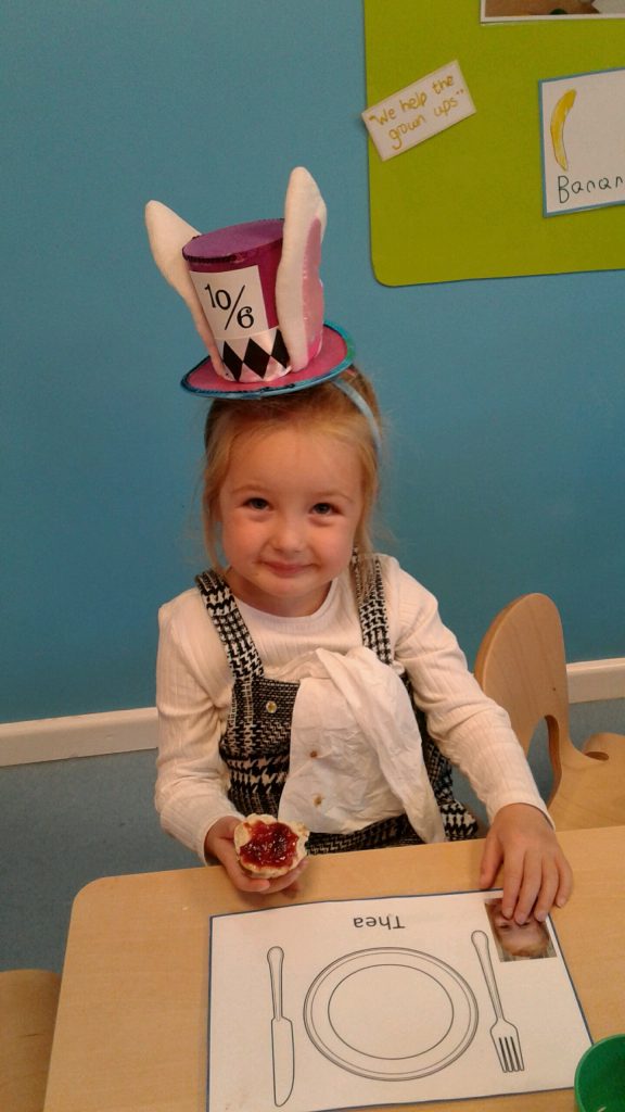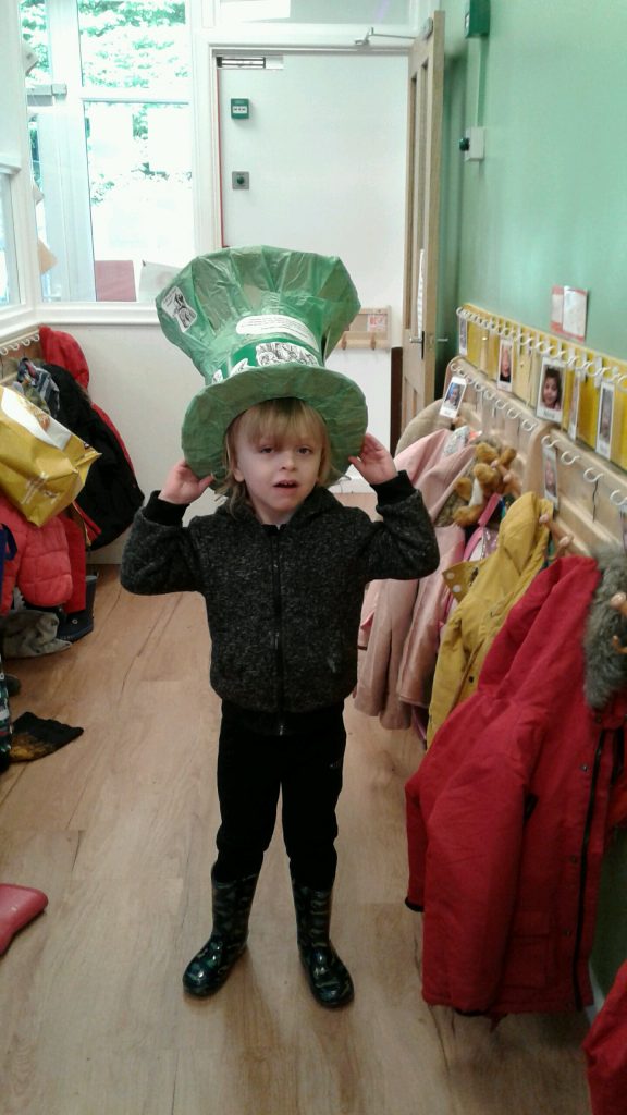 To celebrate National Mad Hatter Day, the children were invited to come into nursery wearing hats that they had made at home. Although this celebration originated in America, we thought it sounded like fun and, as well as dressing in our fancy hats, it gave us the opportunity to talk about Alice’s many adventures in Wonderland. Author, Lewis Carroll would have loved all the laughter we had!