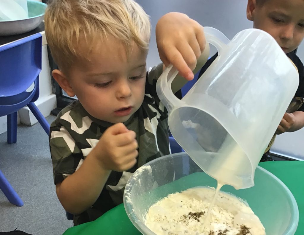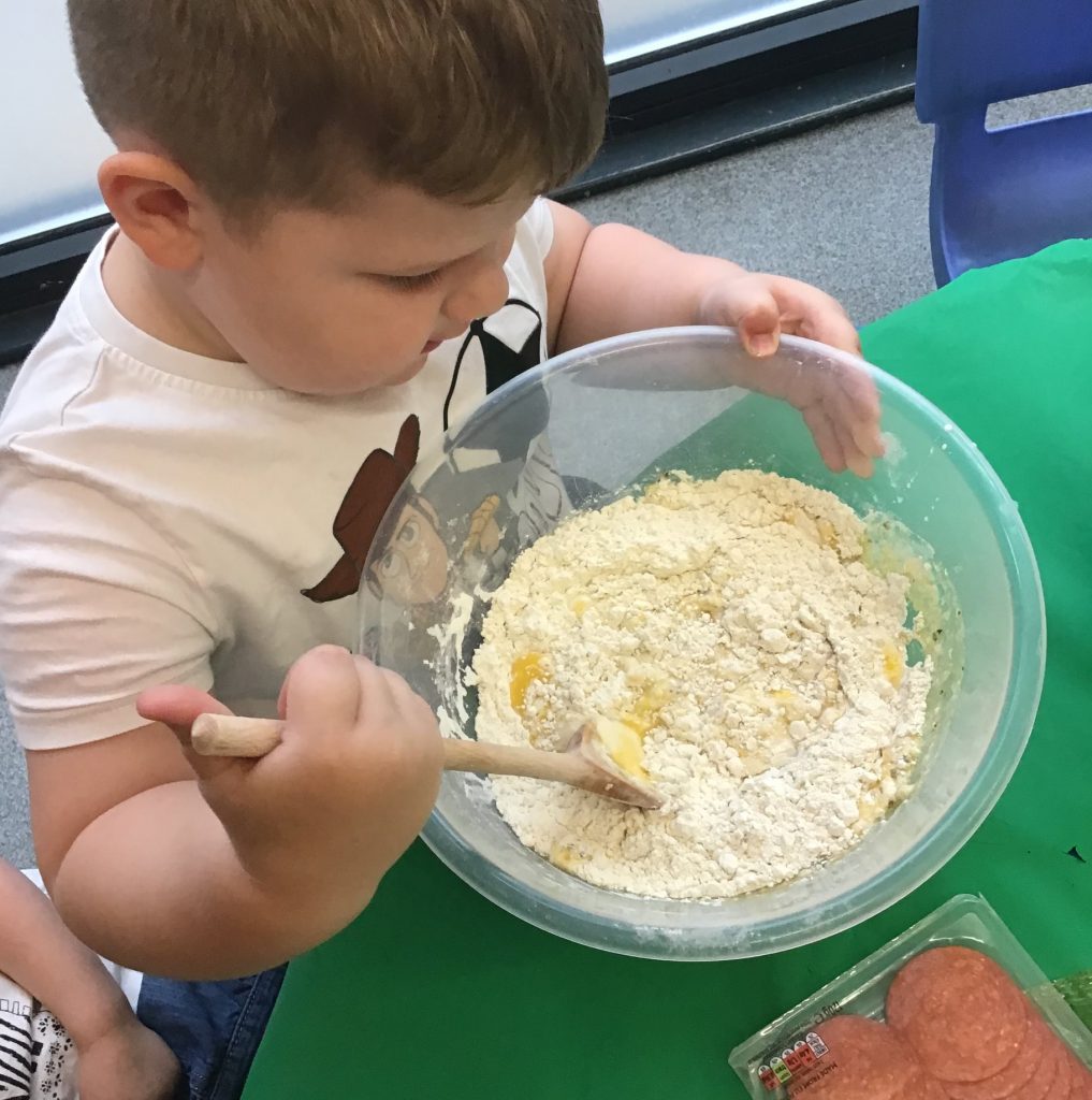 They talked about weight and the importance of having clean hands and also about mixing the ingredients well which the children were really good at.