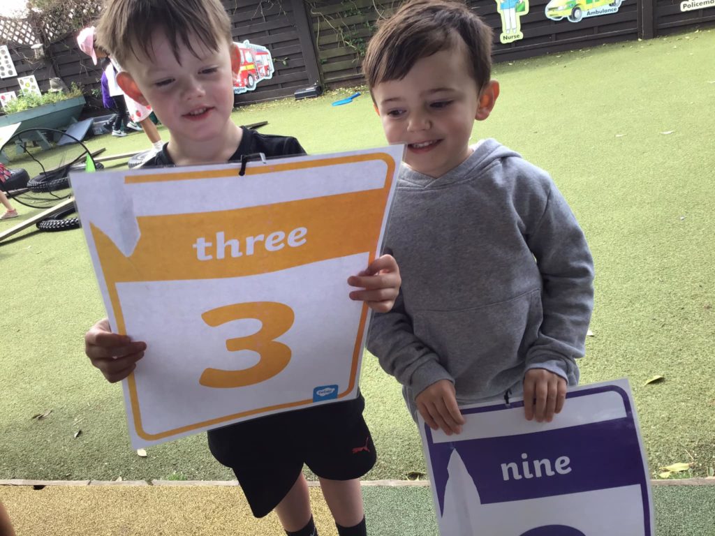 In our garden the Early Years’ children participated in a number scavenger hunt where they successfully found numbers 1-10! Well done everyone! They then counted the numbers on our giant number line.