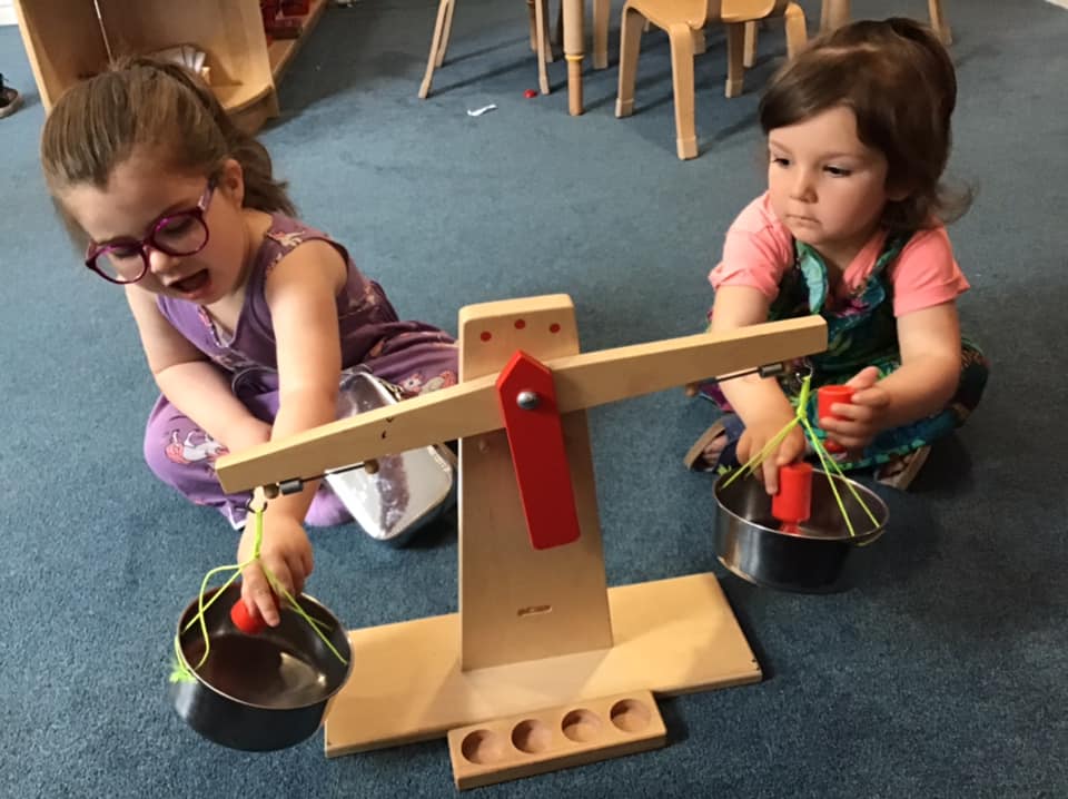 Finally, they enjoyed using the balance scales to play around with weights, trying to even out the scales, and using mathematical language related to the activity such as heavier, lighter, measure and capacity.