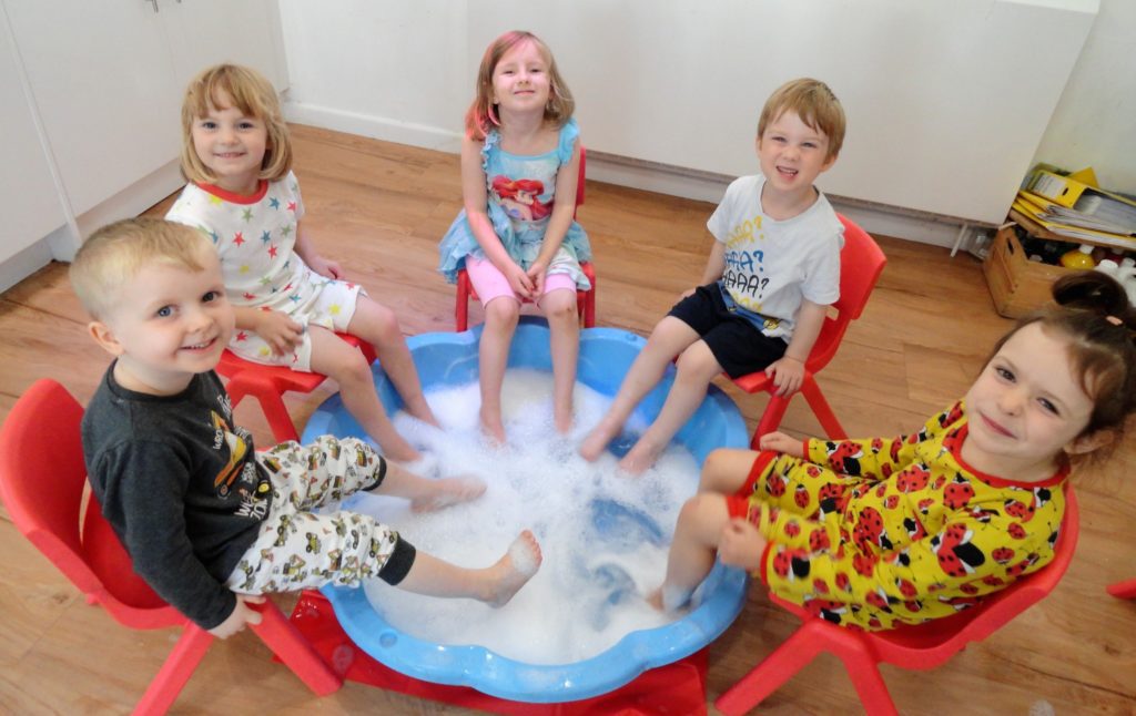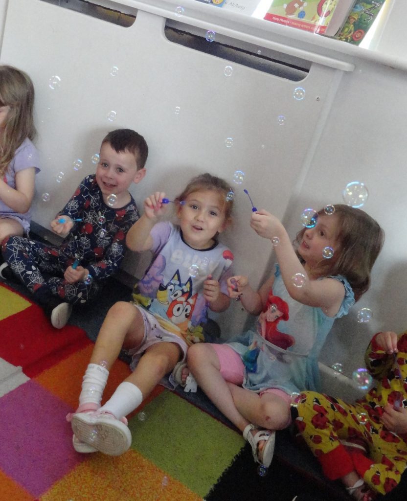 Here at Toton, the children enjoyed having group foot spas and joining in with calming stretches and yoga. The children all loved blowing bubbles to each other and trying to catch bubbles on their bubble wands.