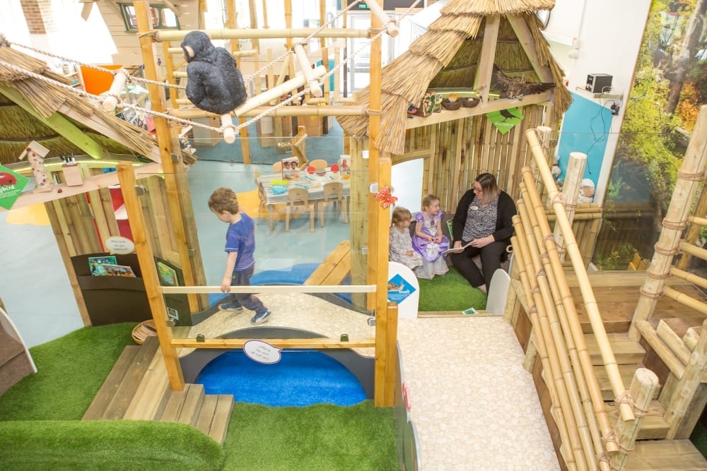 How many animals can you spot in the Jungle Room? This purpose built environment has been designed in consultation with children and parents and provides opportunities for physical development. Children are provided with the ability to climb, use ropes and steps, crawl, jump and slide!
