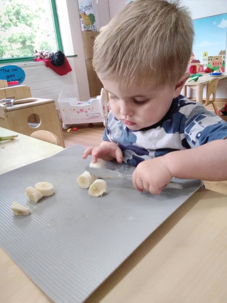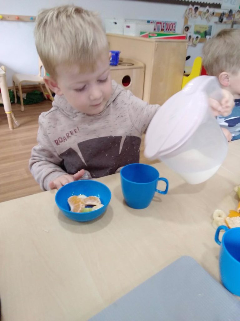 Not so much, ‘once upon a time’ but ‘all of the time,’ (just like all Children 1st nurseries) we encourage the children’s independence and self-help skills as part of daily nursery life. The children enjoy activities such as pouring their own drinks, practising peeling the oranges and cutting up the bananas with a knife.