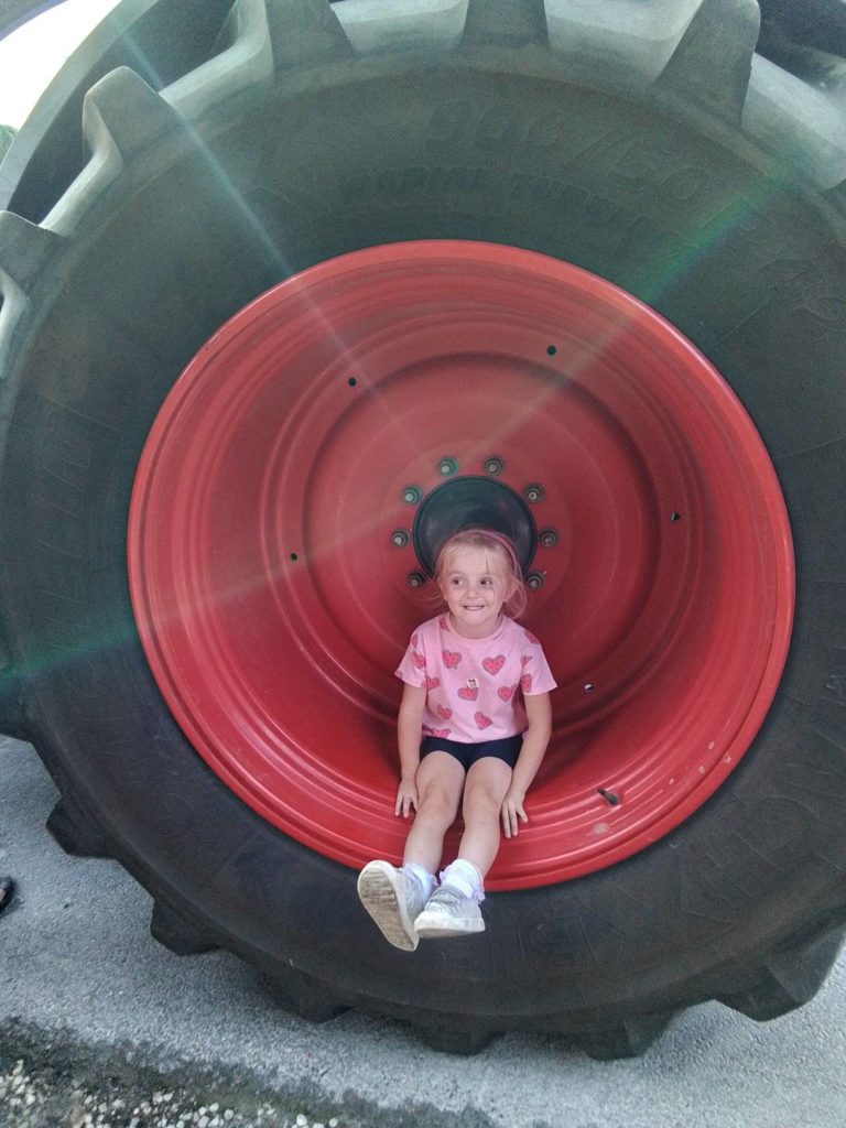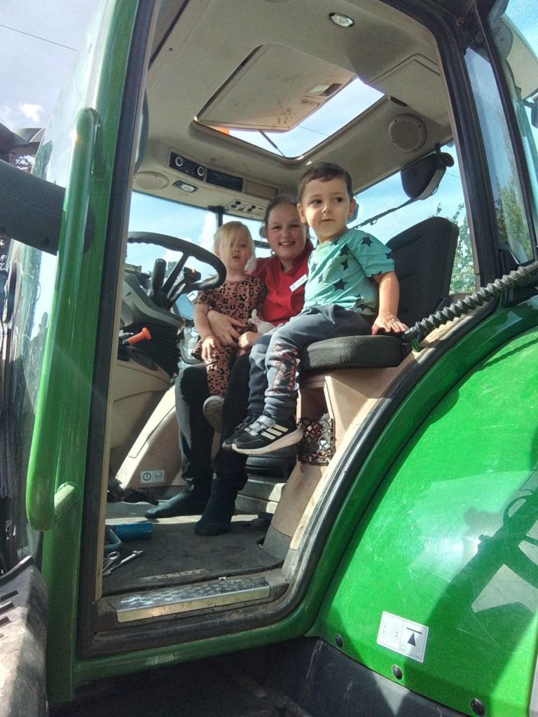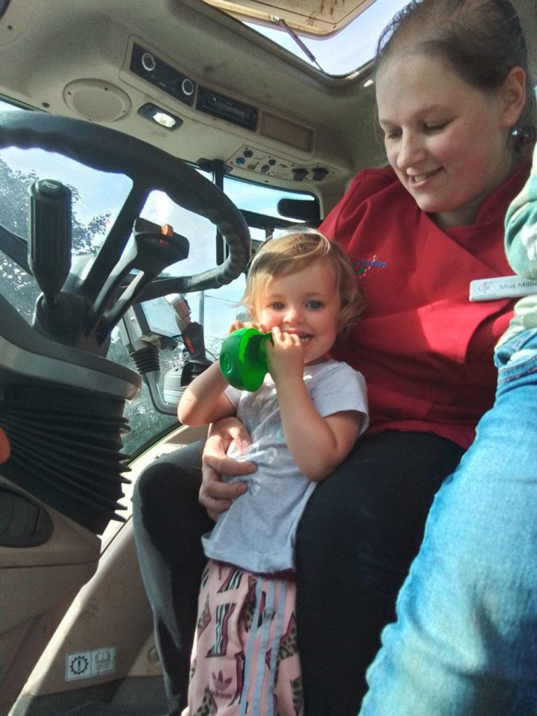 We were able to take a look inside and see how tall it made us when we sat on the seat. Afterwards we talked all about harvest and how the tractor is working really hard to gather all the crops that are being grown over the next month.