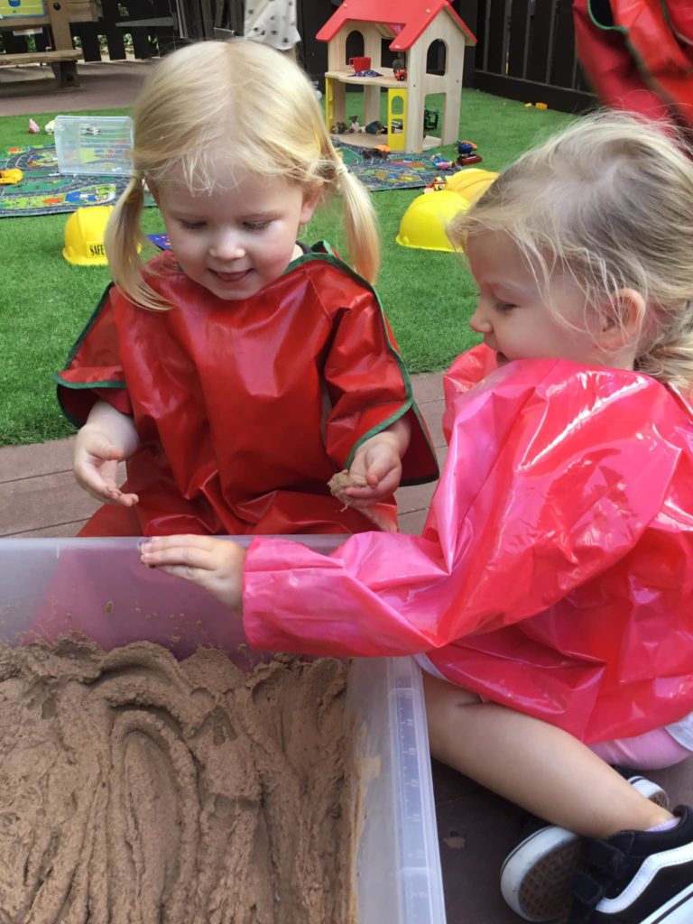 The Peter Rabbits have been playing in the slimy sand mousse. They loved its soft texture. Then they decided to paint with water and take the cars to the car wash.