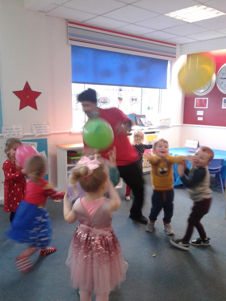 After Santa’s visit the children enjoyed party games and pass the parcel was enjoyed by all!