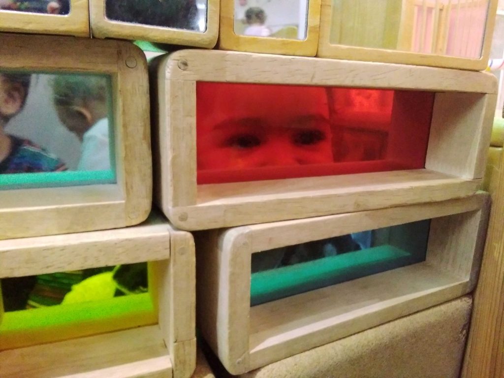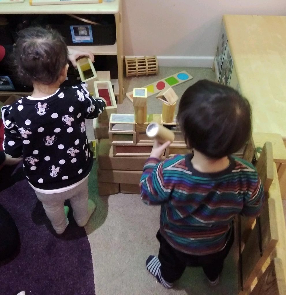 Once constructed the children loved using their masterpiece as role play area looking through the colourful ‘windows’ to wave to their friends and making pretend cups of tea.