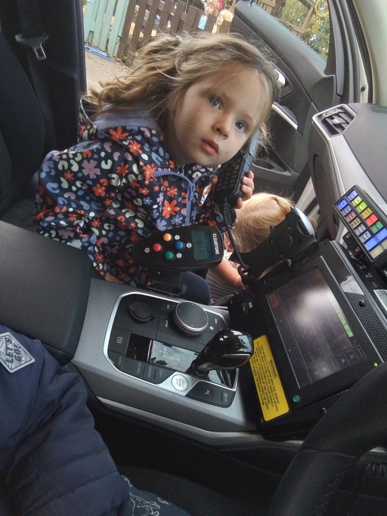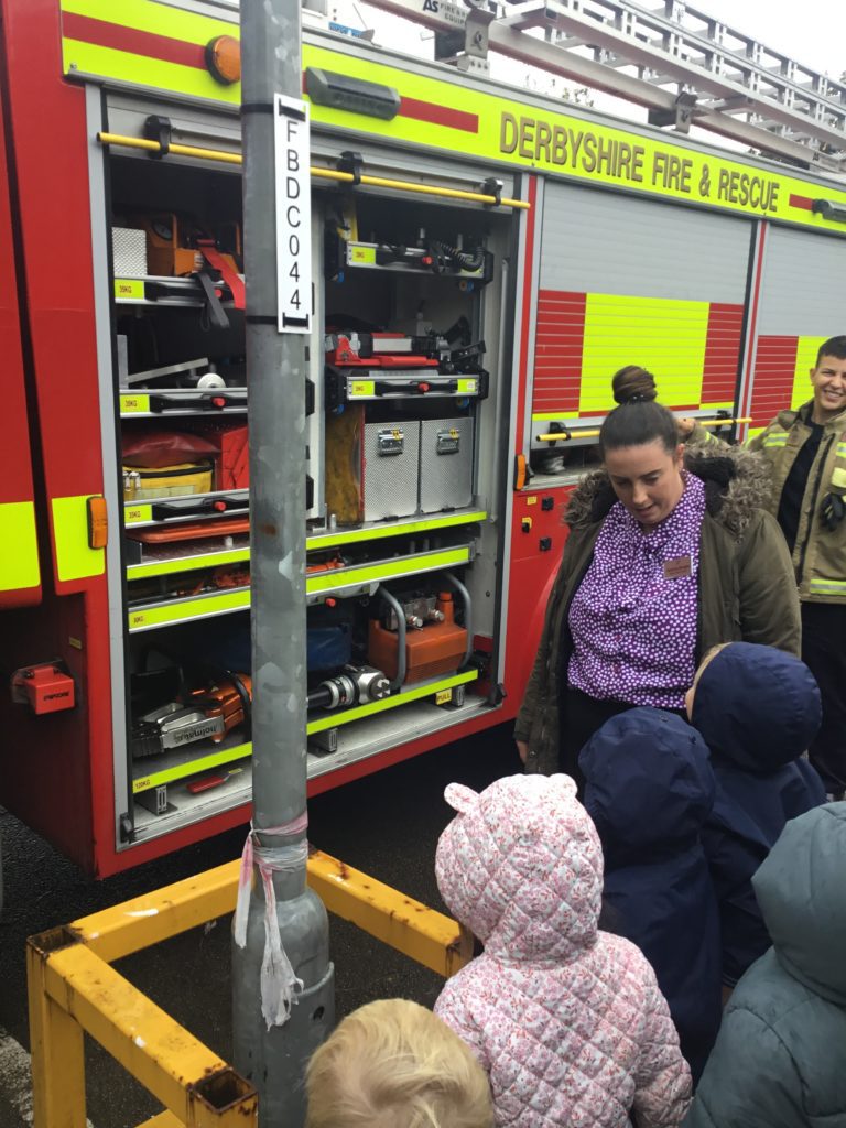 Children at our Clowne nursery were delighted to receive visits from both the Derbyshire Fire and Rescue Service based at the Clowne Station and Derbyshire Police last week to support their ‘People Who Help Us’ topic.