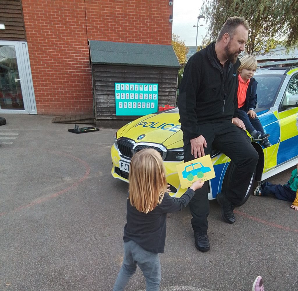 These visits meant so much to the children and we are indebted to both the firefighters from Clowne Fire Station and to Harrison’s Daddy representing Derbyshire Police for generously giving their time to share with the children so much information about how they help us. The children were buzzing with excitement after these visits! Thank-you so much!