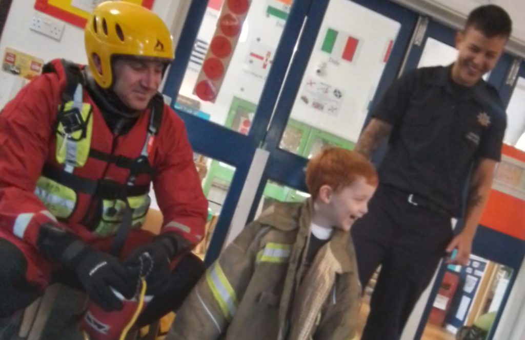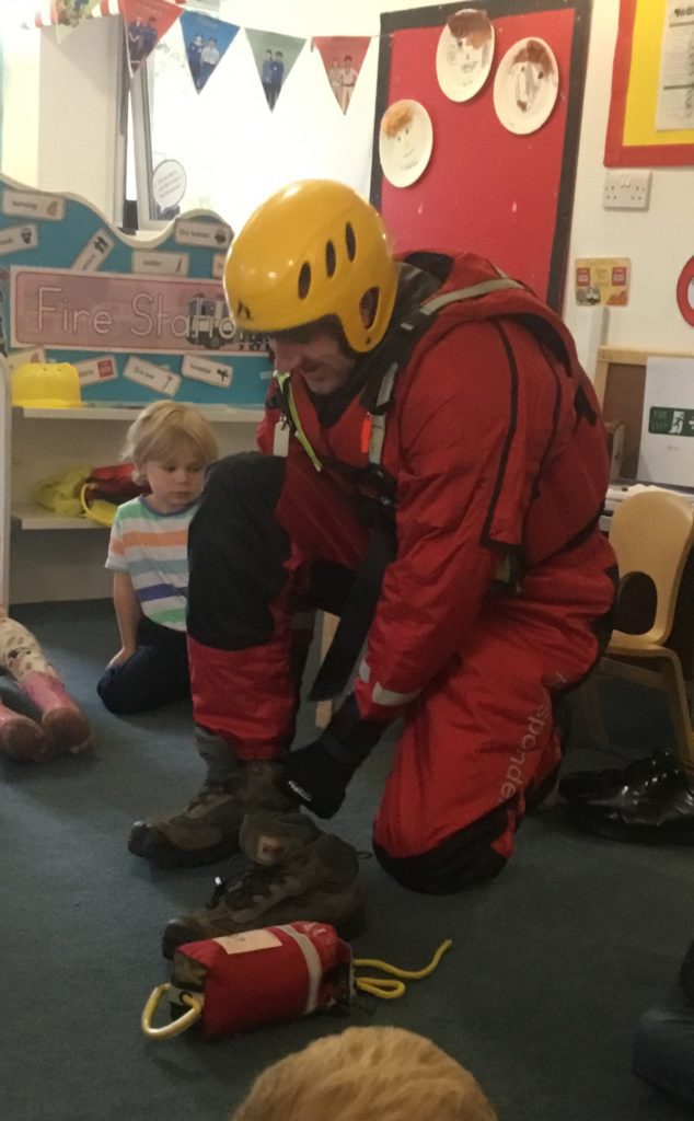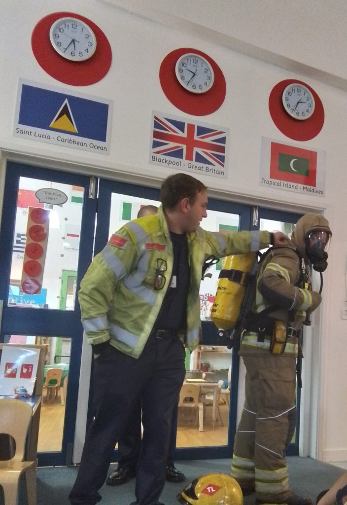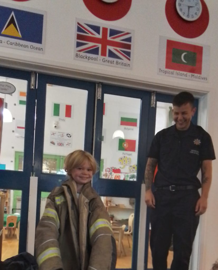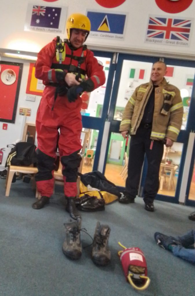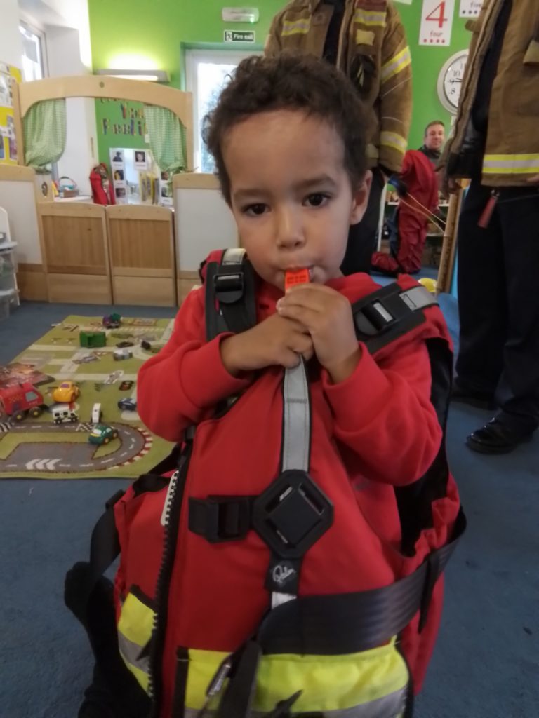 The Fire Service showed the children the various pieces of special clothing they wear depending on the rescue they are attending. As well as seeing the protective equipment worn for typical fires, the children were amazed to see the equipment used when the firefighters have to go underwater. The shiny red fire engine that carries so many tools needed by the firefighters was a big hit. It’s not every day that they have the opportunity to meet real firefighters and have a fire engine come to nursery!