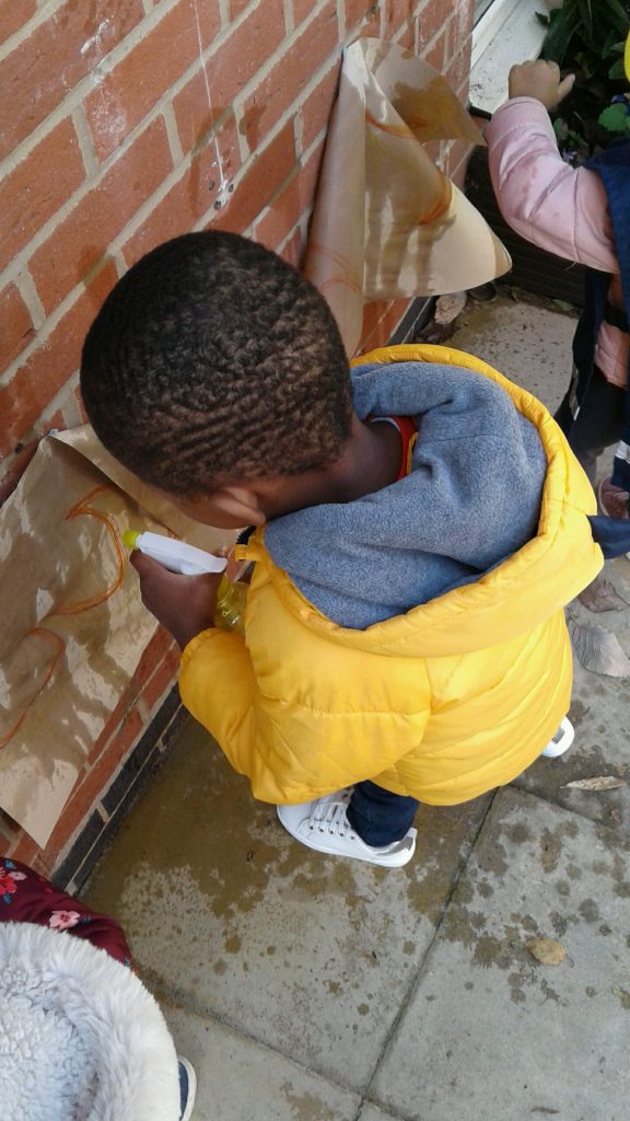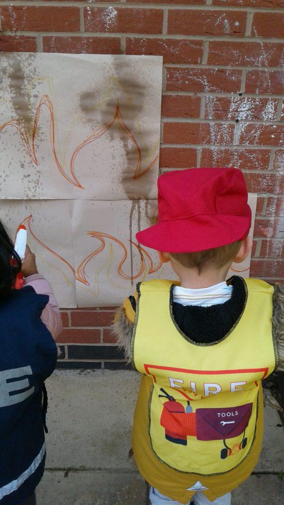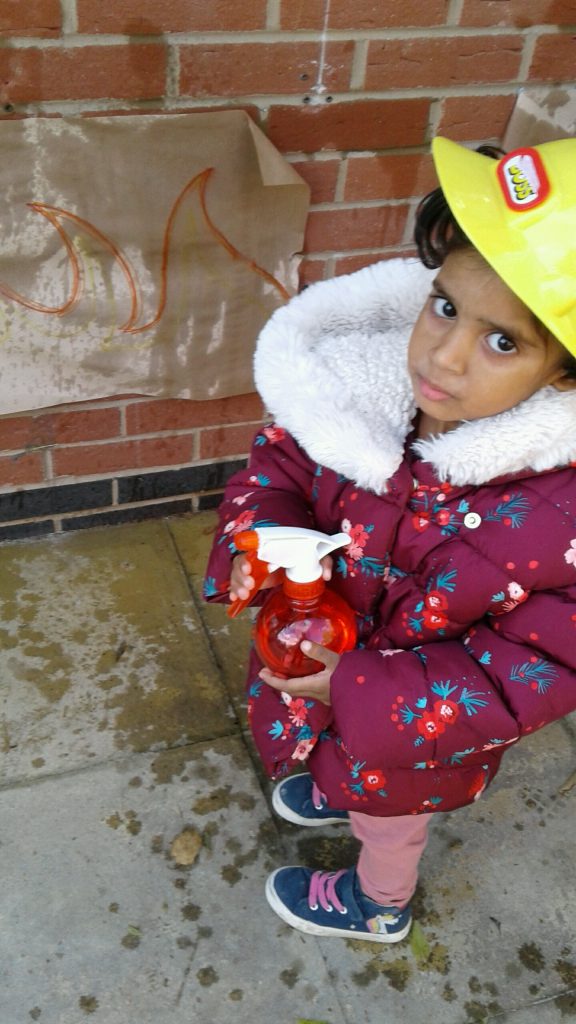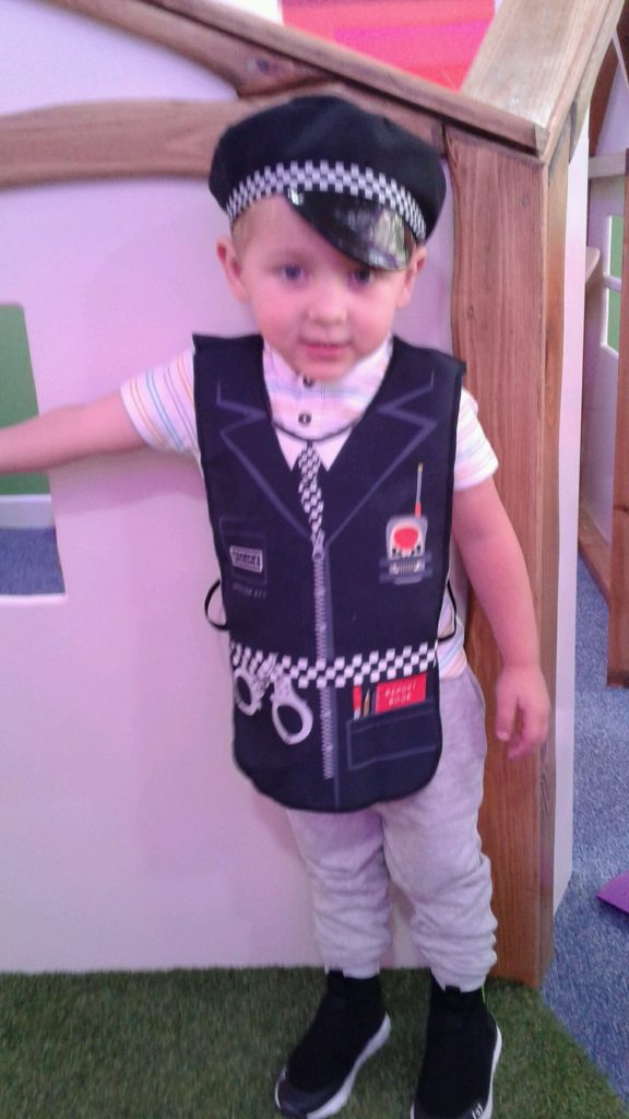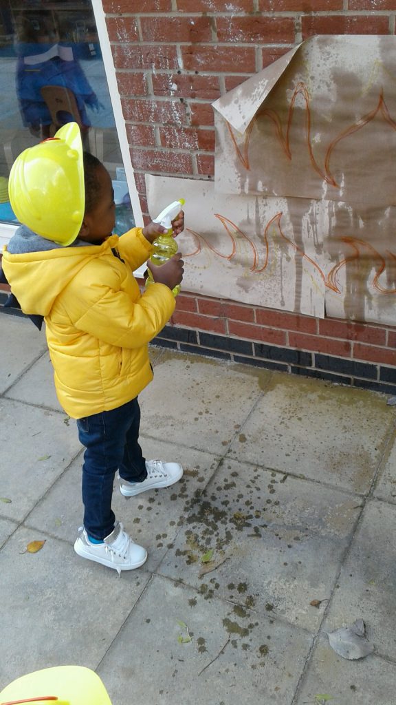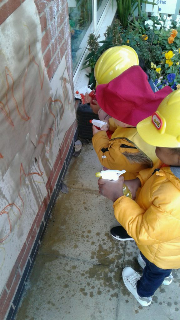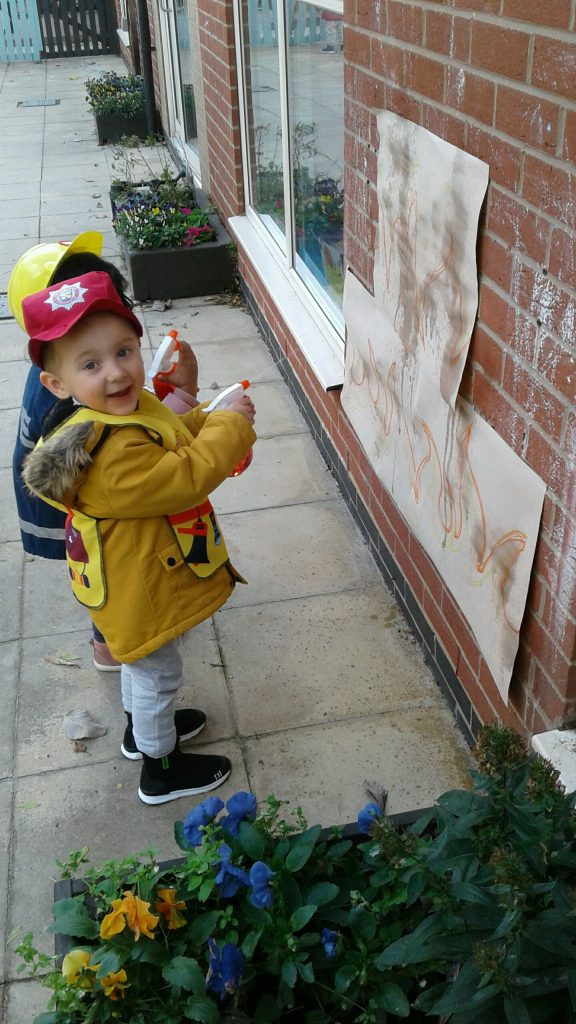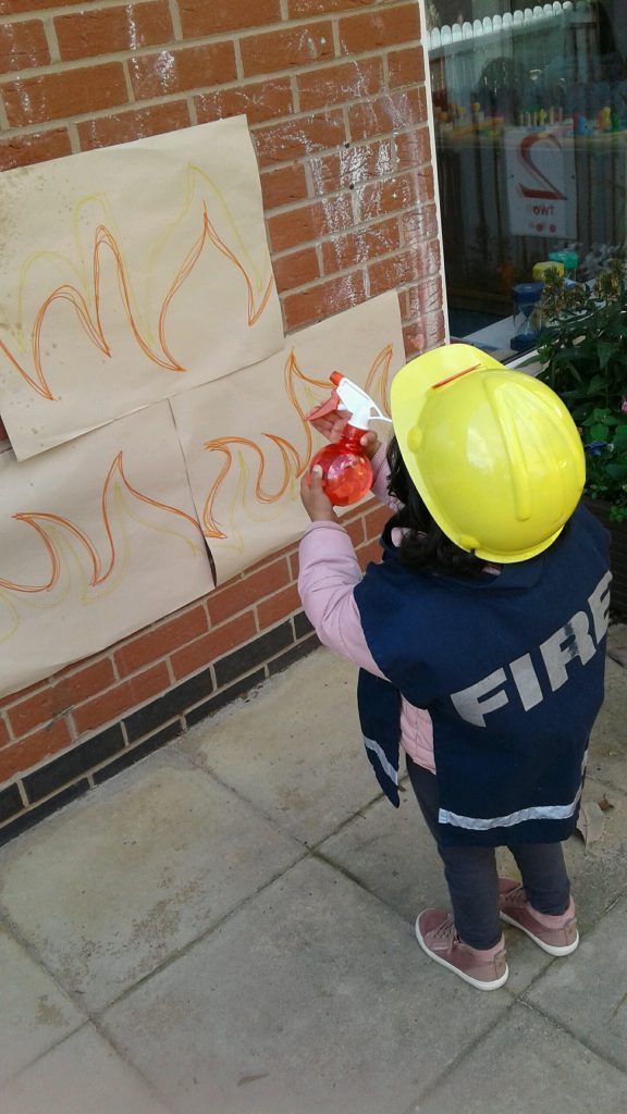 They’ve been busy putting out pretend fires using sprays and developing their motor skills in the process. They were superb fire fighters! We’ve even had a police officer on patrol!