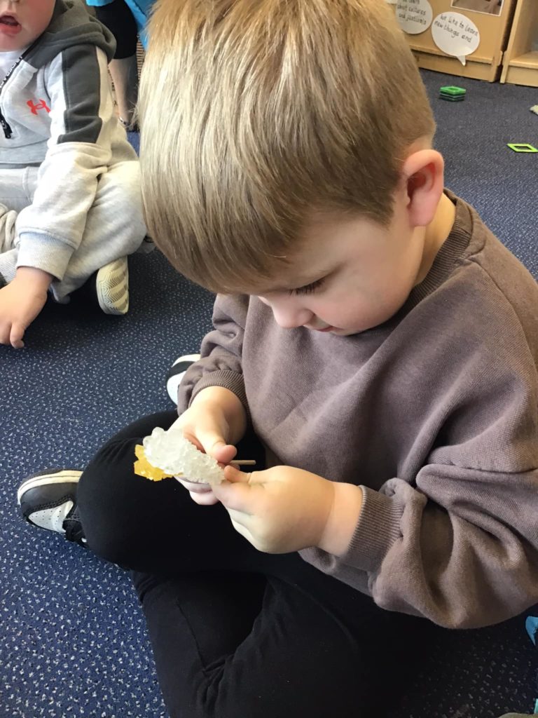 Xander’s mum very kindly brought in a book and some items for us all to look at and talk about.