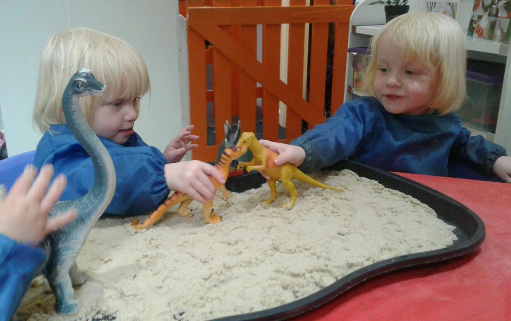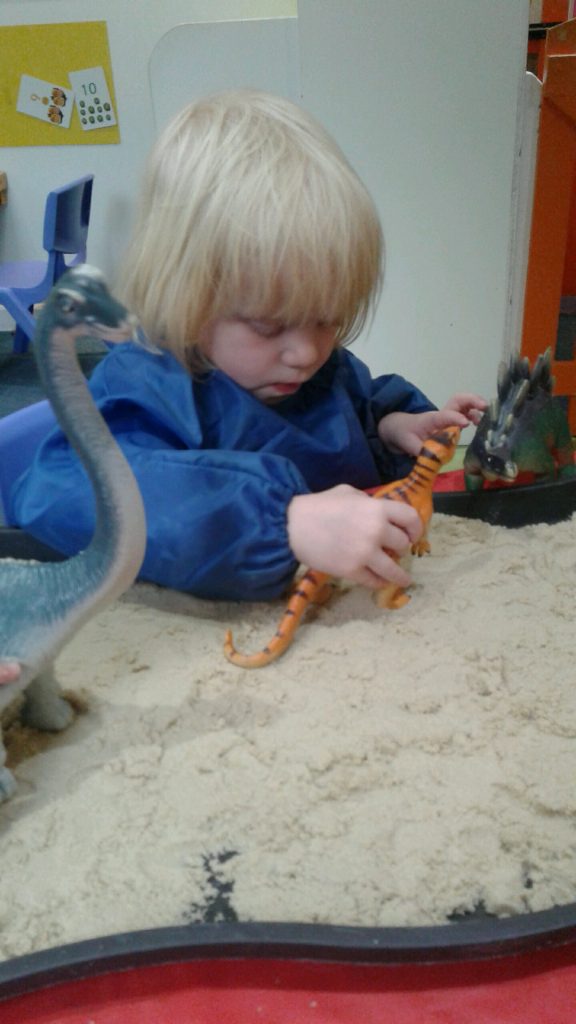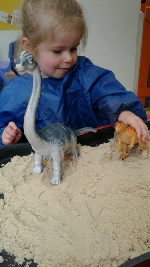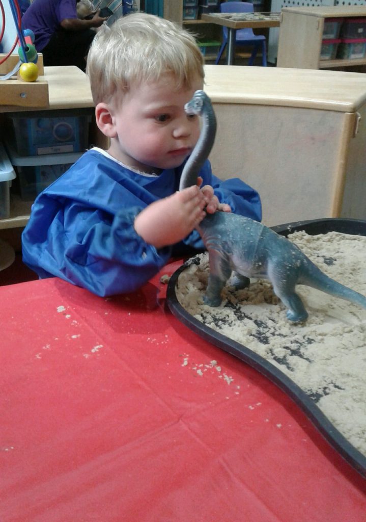 Over at the sand tray, the children were busy making the dinosaurs stomp in the sand! No wonder the Peter Rabbits enjoyed their own bucketful of dinosaur adventures!