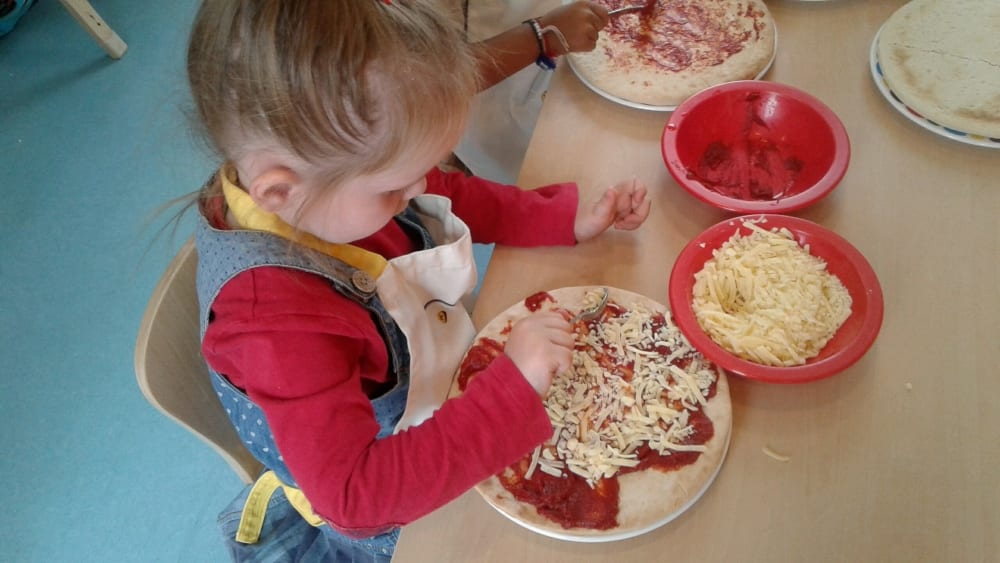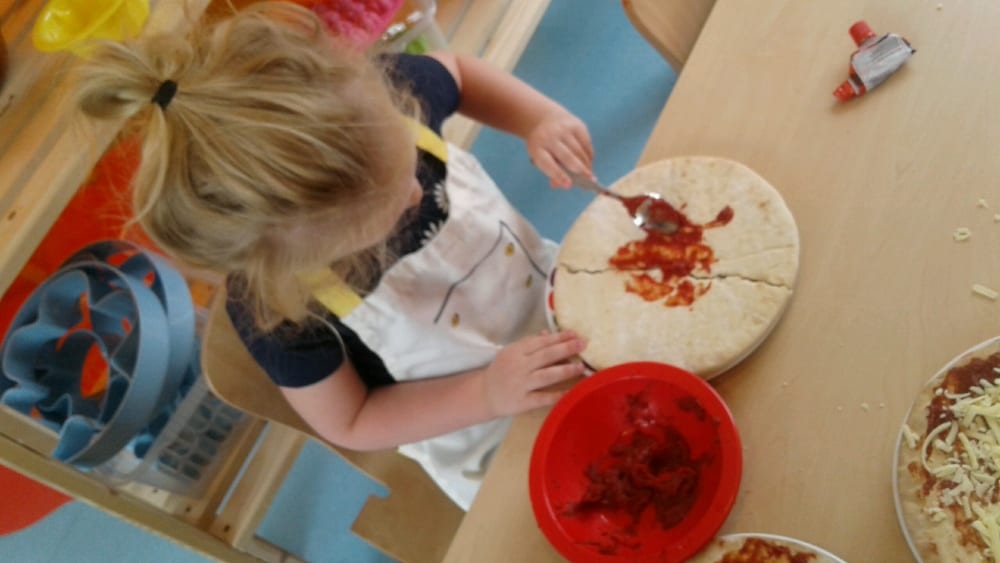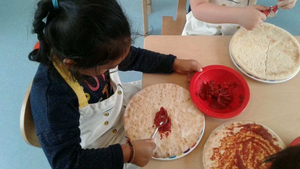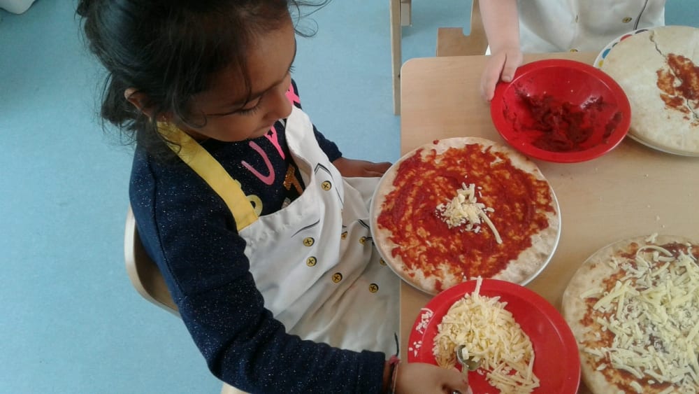 Making the pizzas was one of the most popular activities. The children carefully covered the base with tomato sauce before adding their own toppings to create individually hand-crafted pizzas. The results were delicious! Well done to the Birstall star bakers!