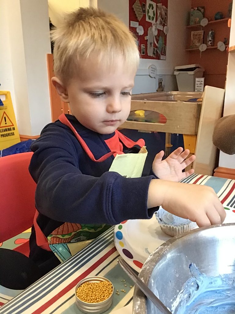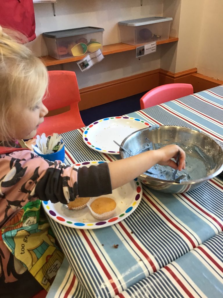 The visit finished with the children presenting their visitors with some special cupcakes. The children had decorated the cakes with blue icing and placed a police officer on the top of each one!