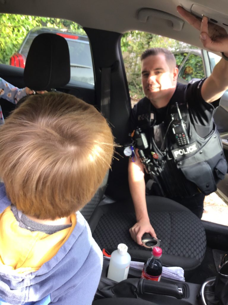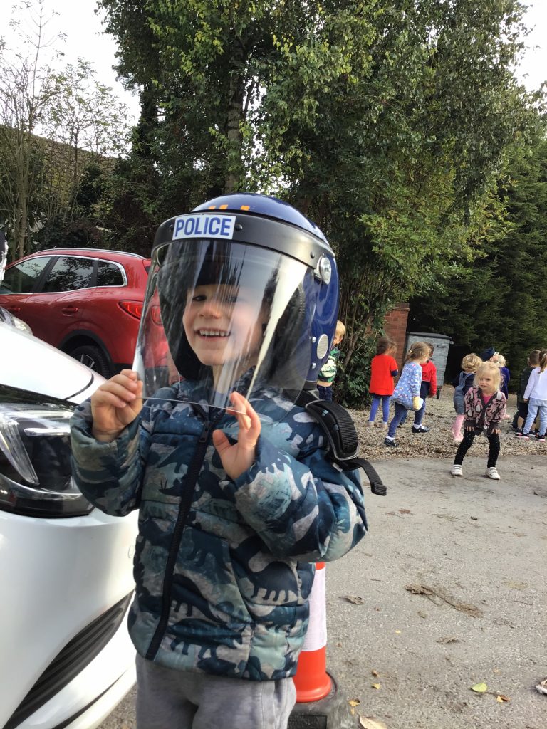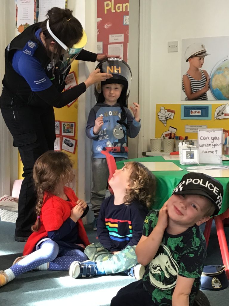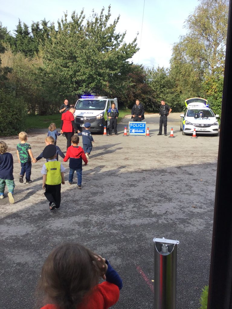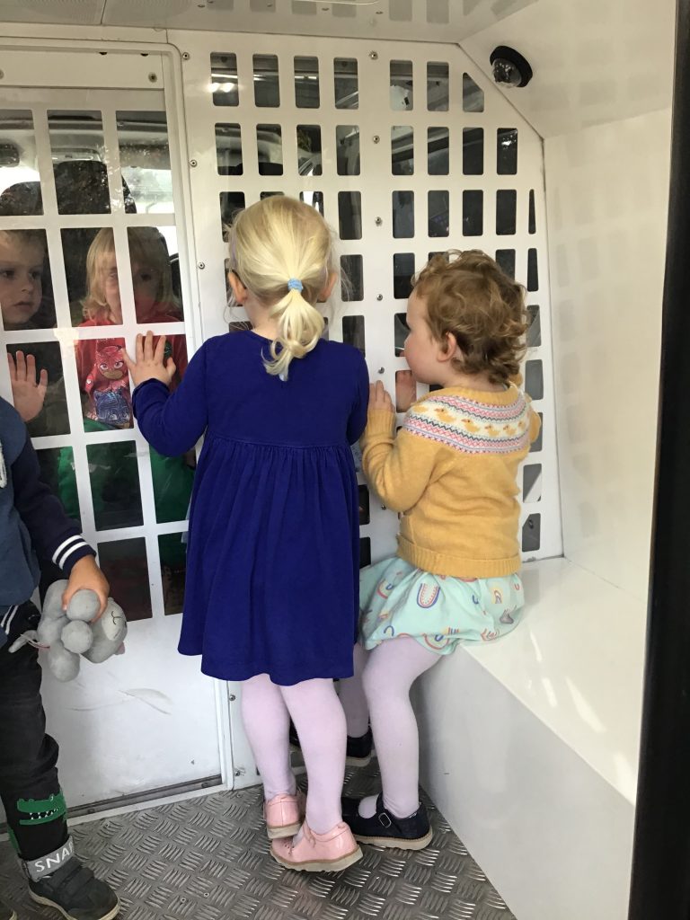 Our Peter Rabbits and Early Years enjoyed a fantastic visit from local police officers. We were very fortunate to be joined by four officers from the Newark Police  who, to the delight of the children, brought along their ‘flashing vehicles’, a police car and a van!