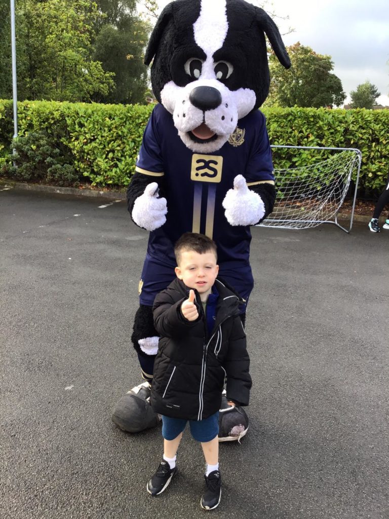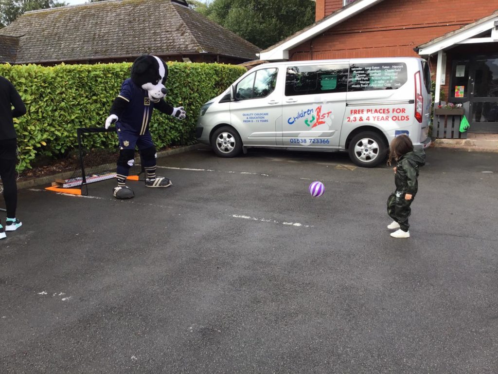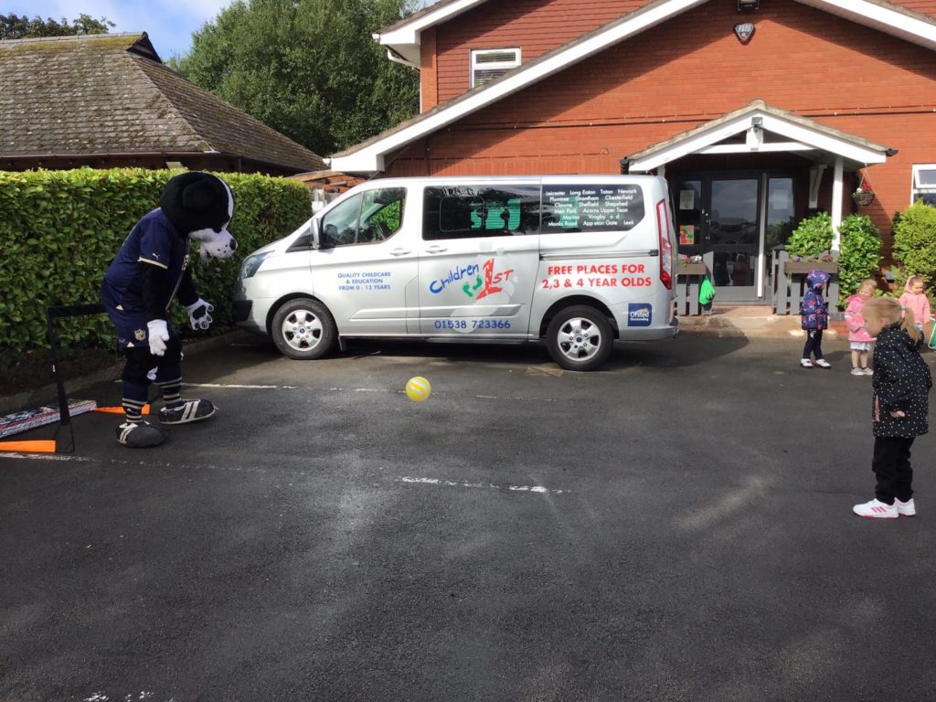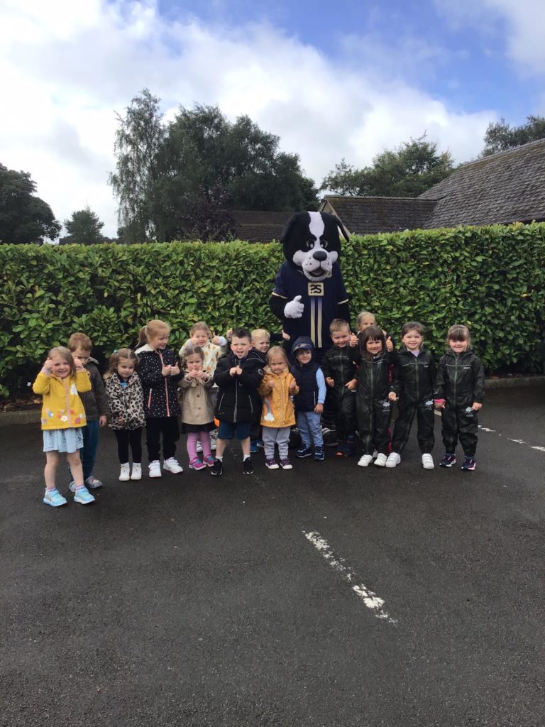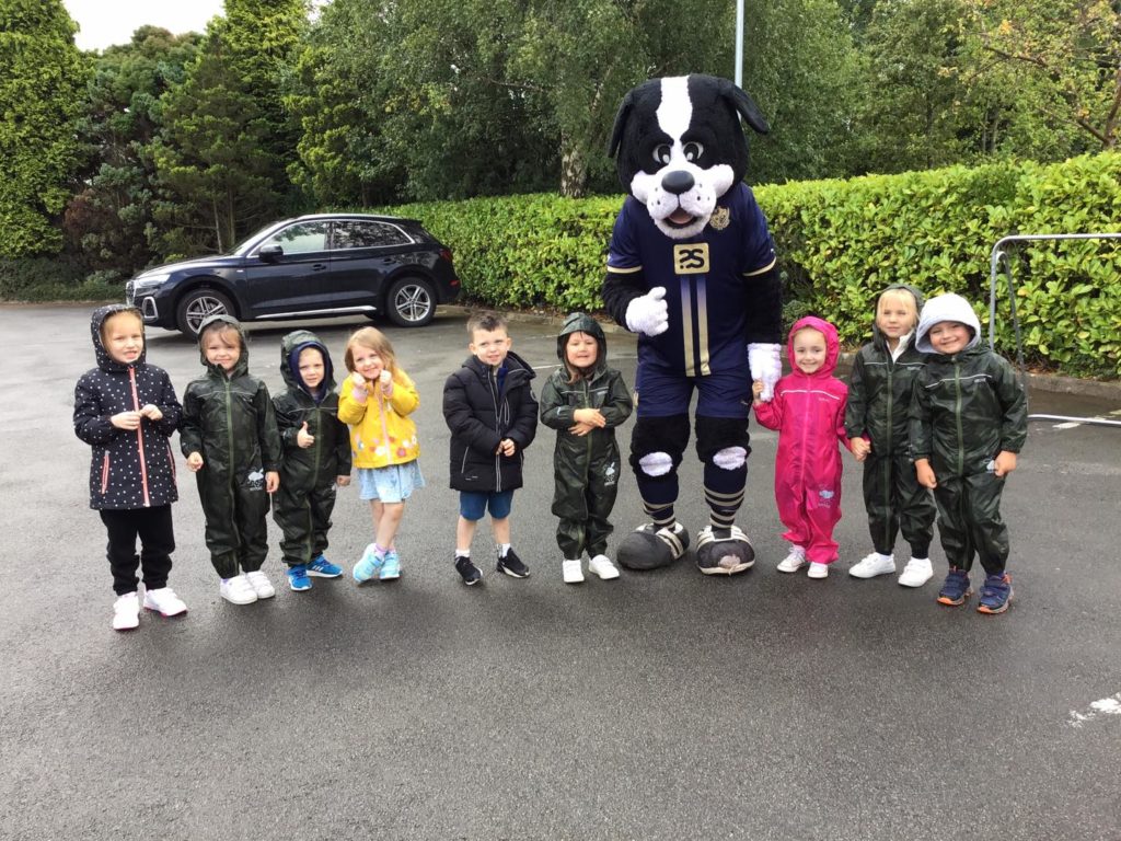 The Early Years’ children at Meir Park were thrilled when two important visitors arrived at nursery. These were Boomer the dog, the Port Vale Football Club mascot, and Ellis Harrison, who plays as a forward for the club.
