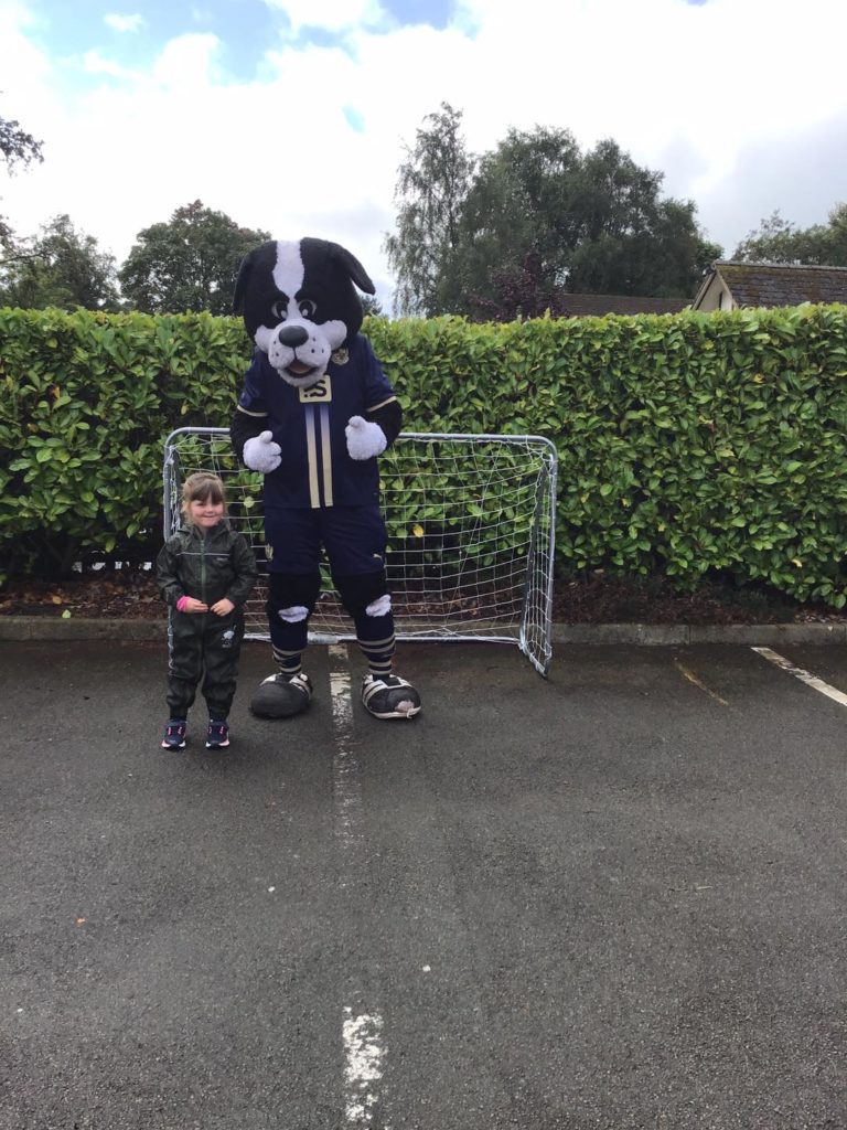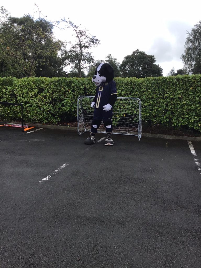 Then it was over to the goals where the children tried their hardest to put the ball past Boomer. It wasn’t easy as the big dog filled the goal! Have we inspired some budding football stars at Meir Park? Only time will tell!