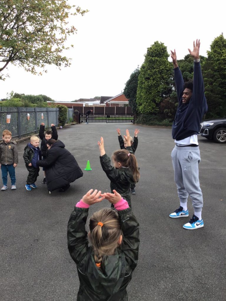 After meeting their visitors, the children were keen to get active. Their visitors soon got them moving as they put them through their warm up paces!