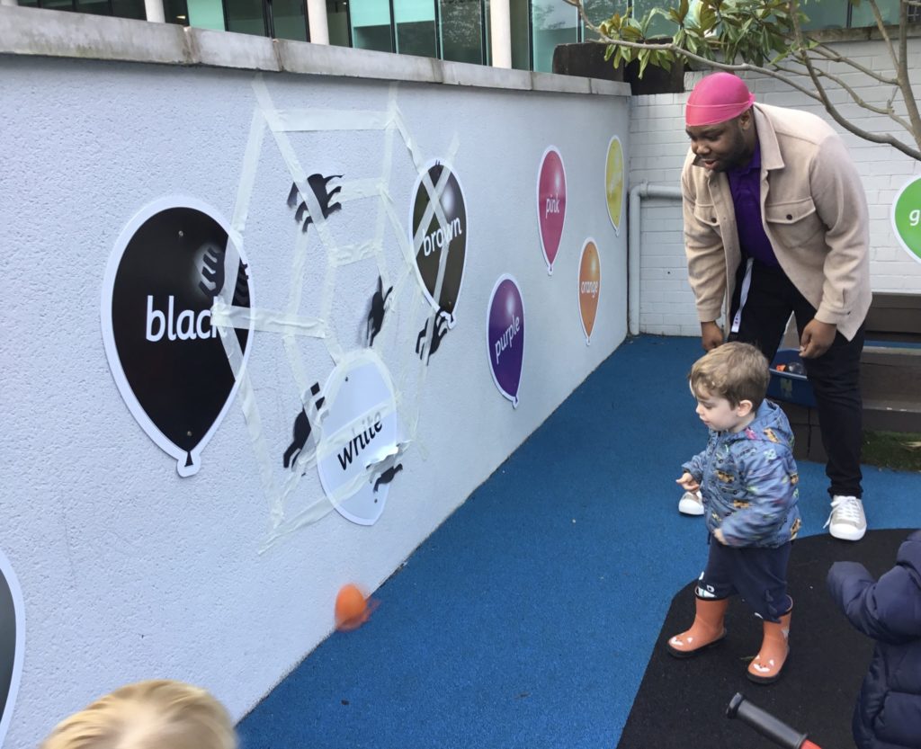 The spiders were no match for the children at Sheffield as, inspired by the nursery rhyme ‘Incy Wincy Spider’ they washed them out of a giant web using water balloons.