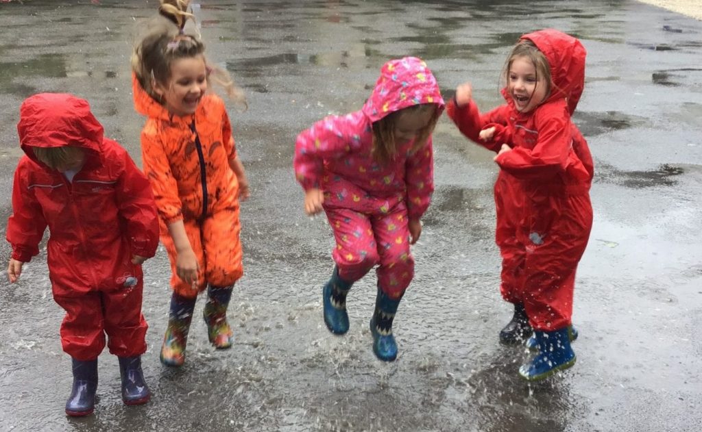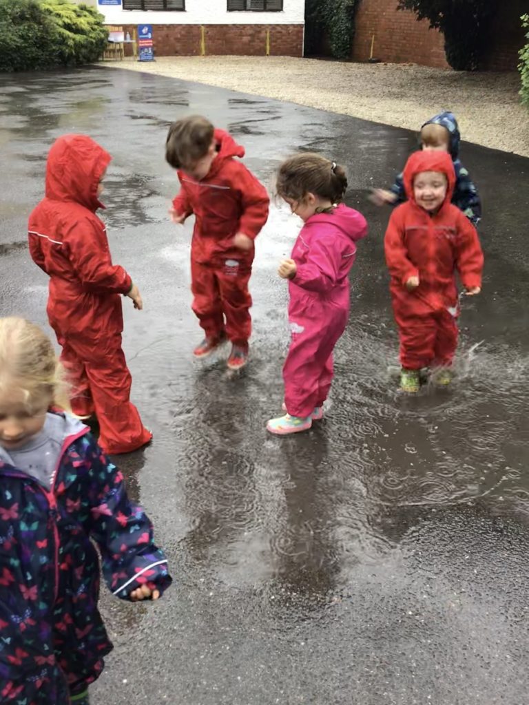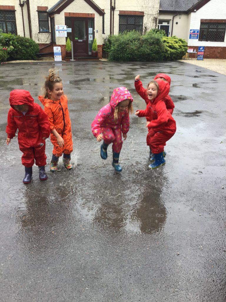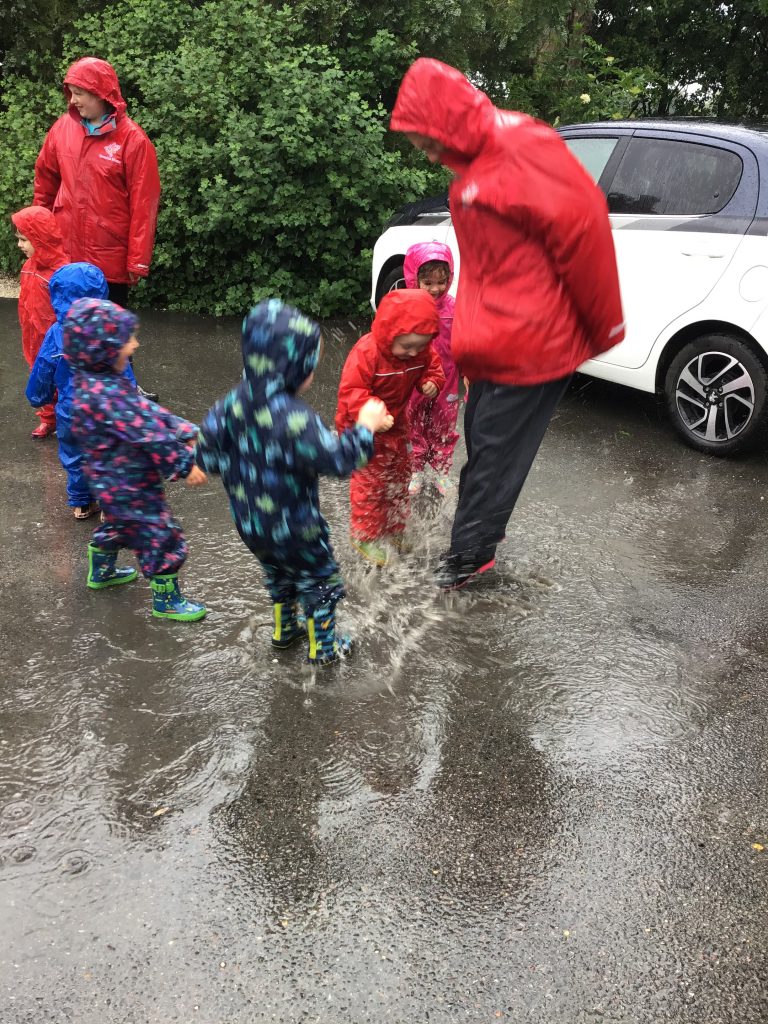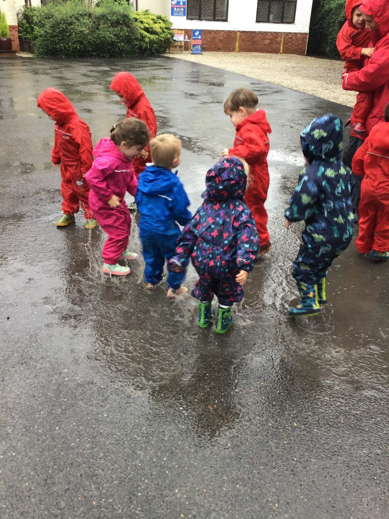 Reminding us all of the saying that there’s no such thing as bad weather, only inappropriate clothing, the children at Newark donned their waterproofs and wellies and raced outside for a quick stomp about in the rain.