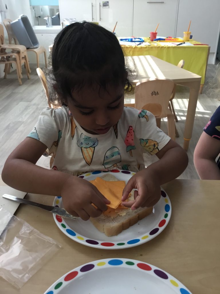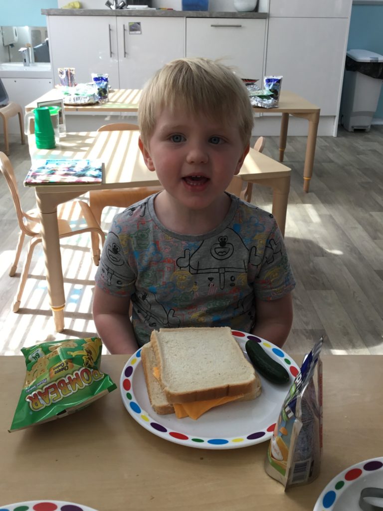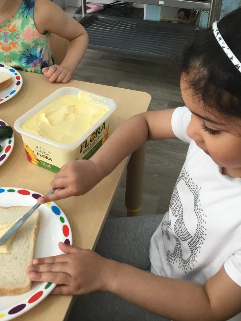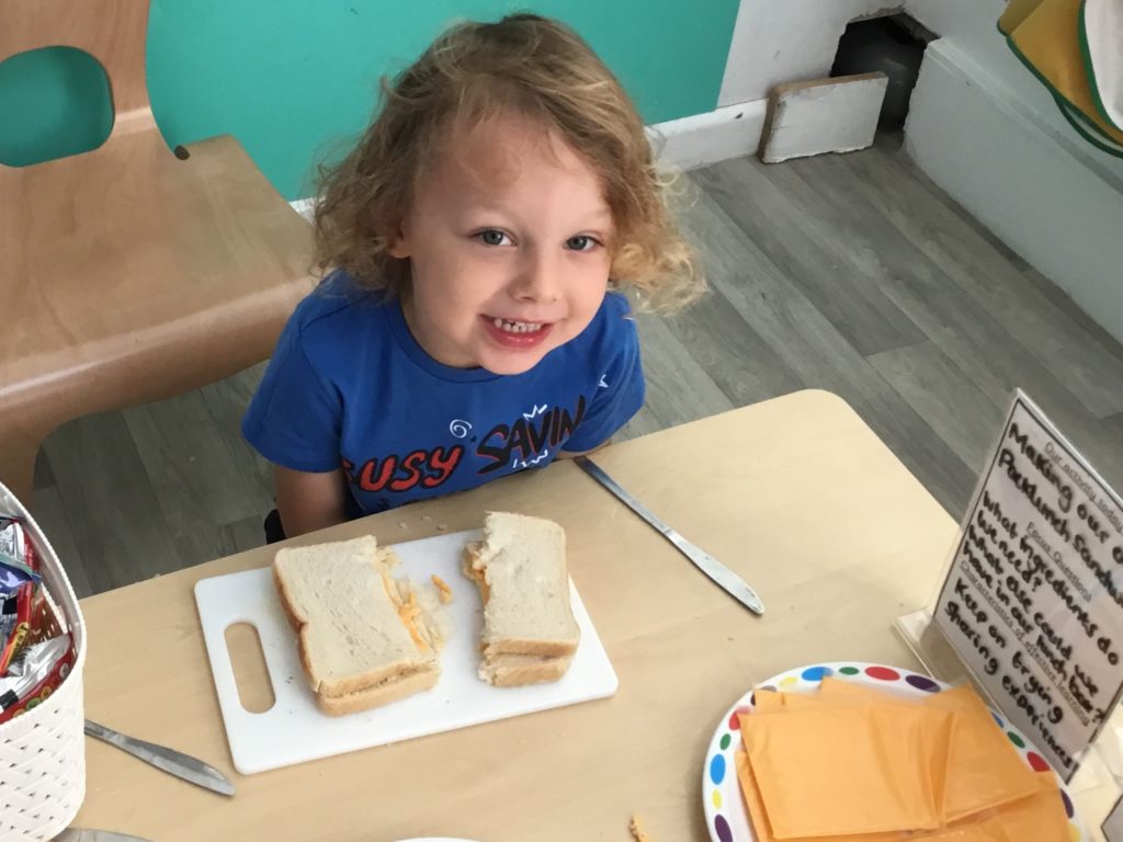 We finished off our school readiness activities by making our own pack lunches. The children did a fantastic job in choosing what they wanted to eat and were really good at making their sandwiches.