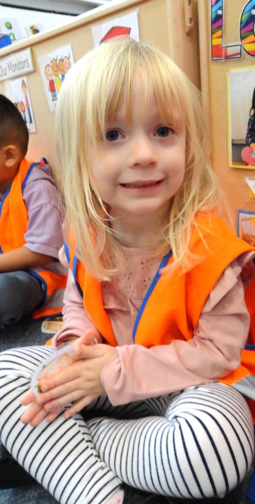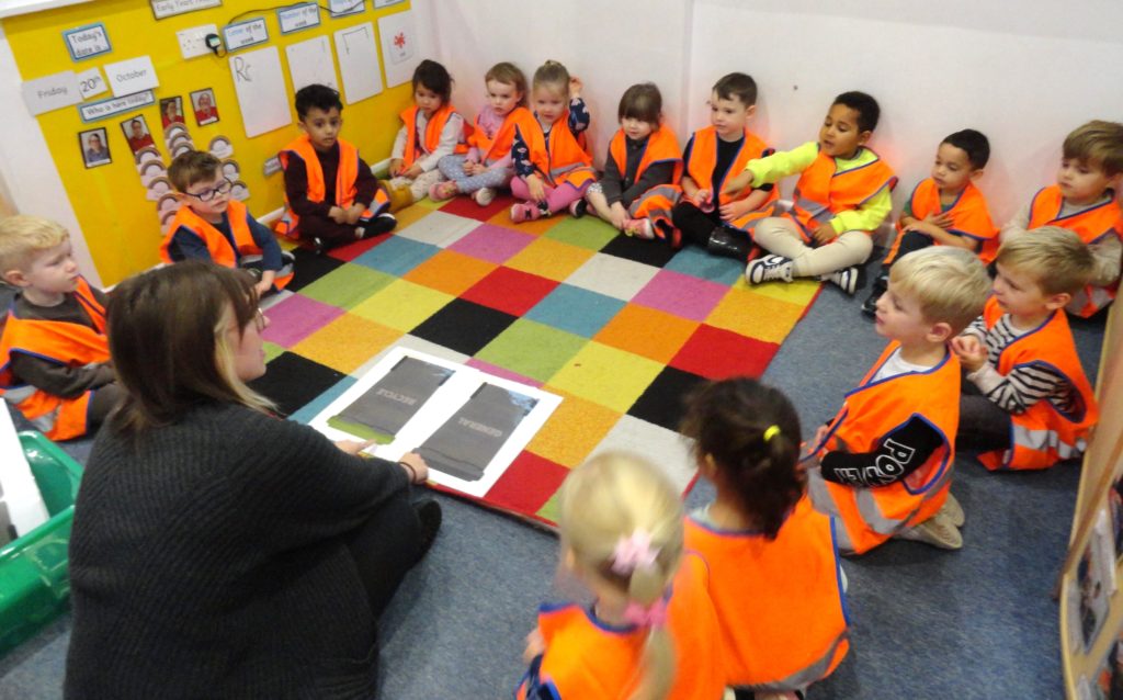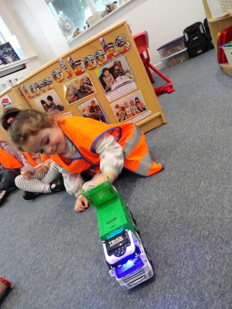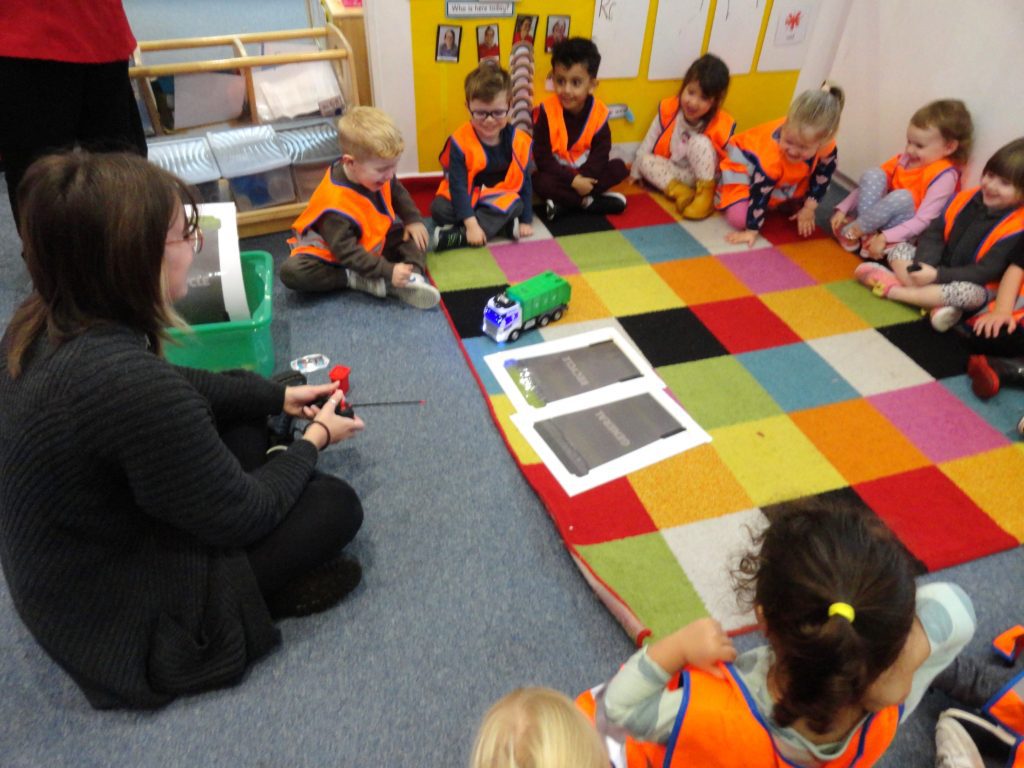 The children were all given special Hi Vis jackets to wear and Erin explained that the Hi Vis jackets help people, such as the bin and recycling collectors, be seen and stay safe.