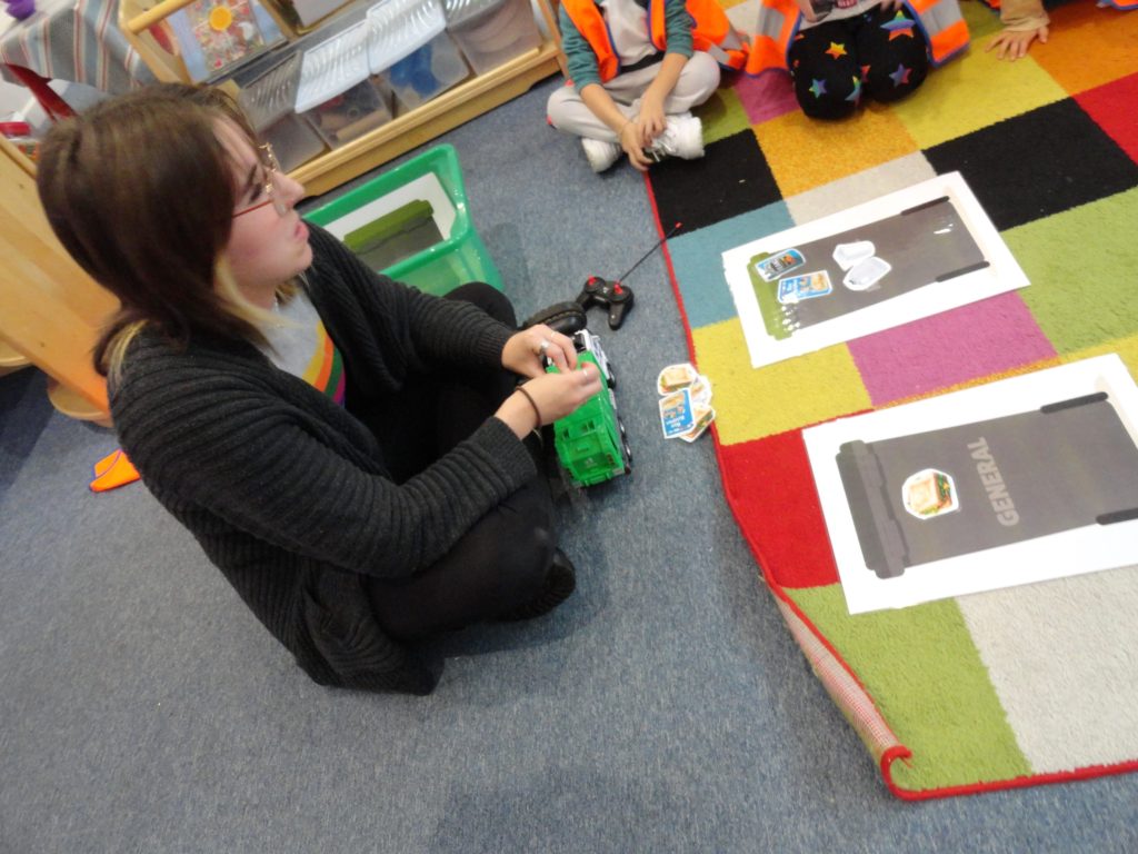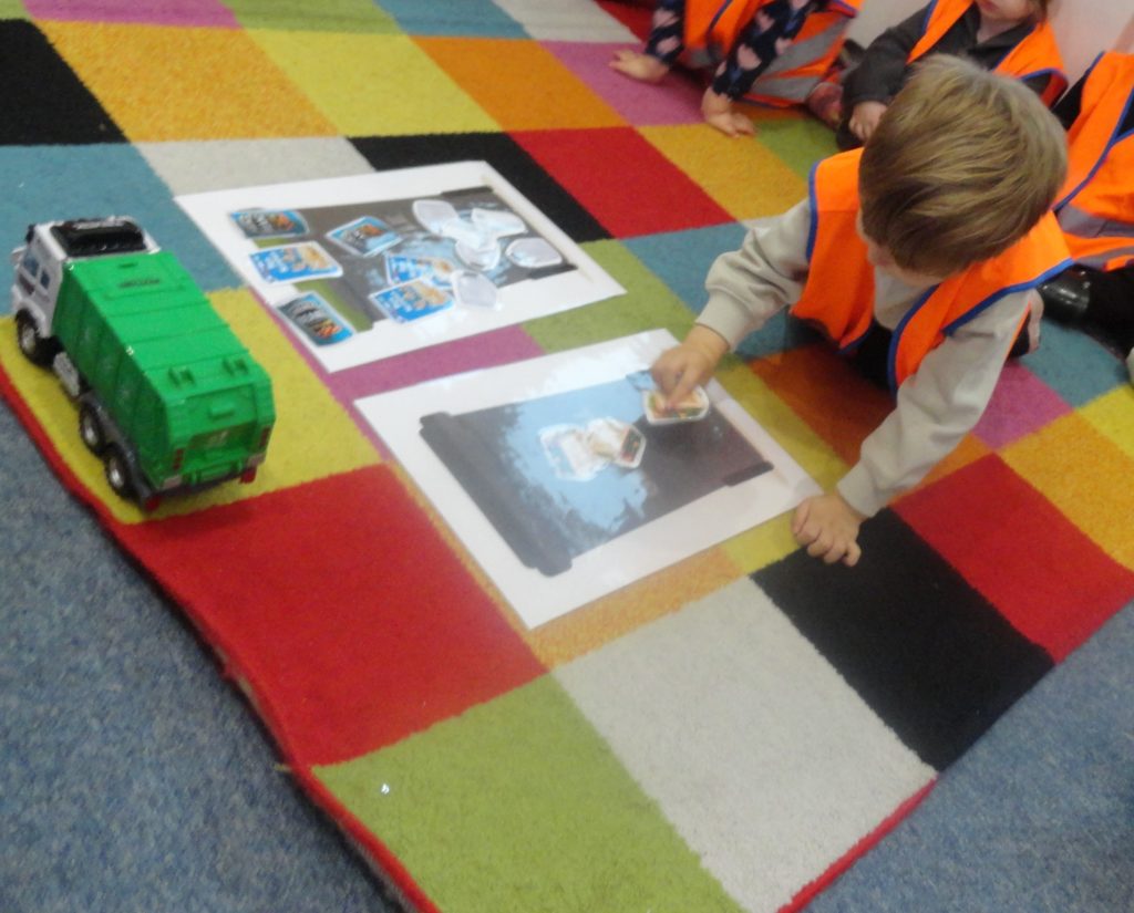 Next, the children took items out of the truck and decided if they could be recycled or not and placed them onto the correct bin image. The children were very excited to receive pencils made from recycled newspapers which they could take home.