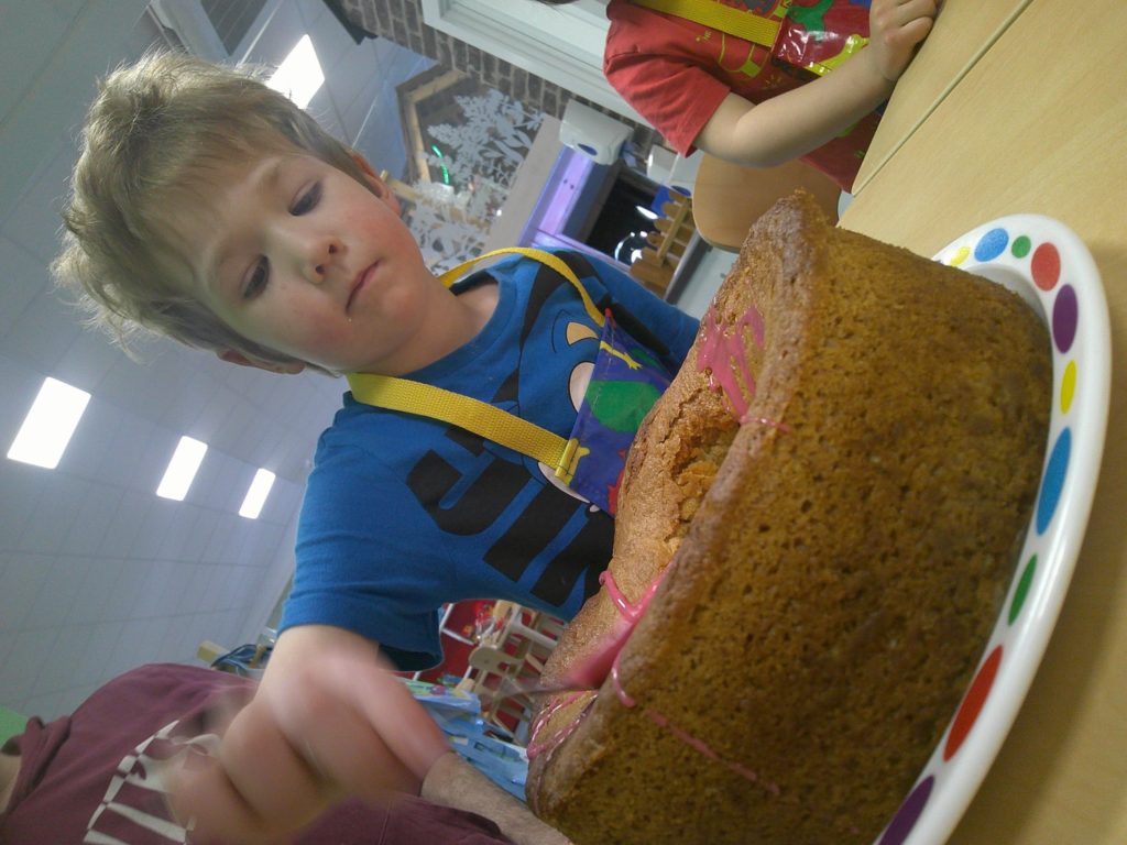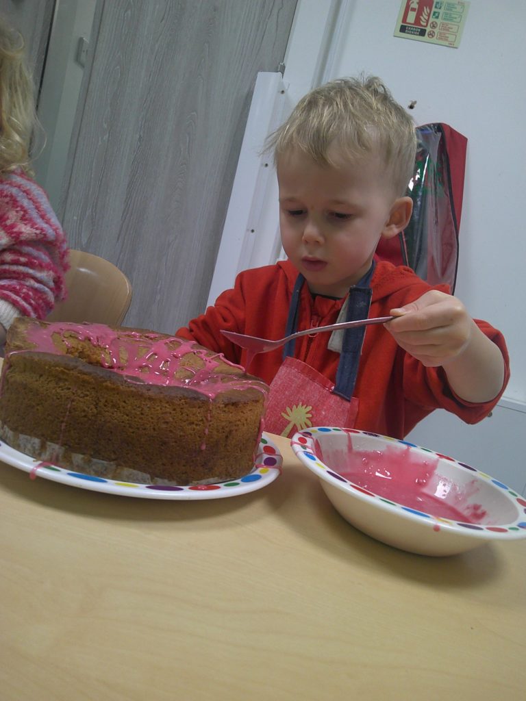 The Early Years at Plumtree also got in on the baking action with each of the colour groups following a recipe to create their own large cake. After watching the cakes bake and cool, the children enjoyed the fun of decorating them with Red Nose Day themed decorations.