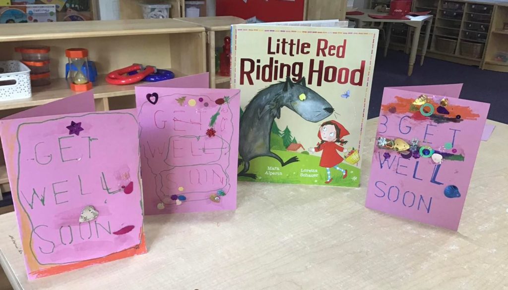 Inspired by the story of Little Red Riding Hood, the children enjoyed a number of different activities. These included making fruit baskets and get well soon cards for Little Red Riding Hood to give to her grandma.
