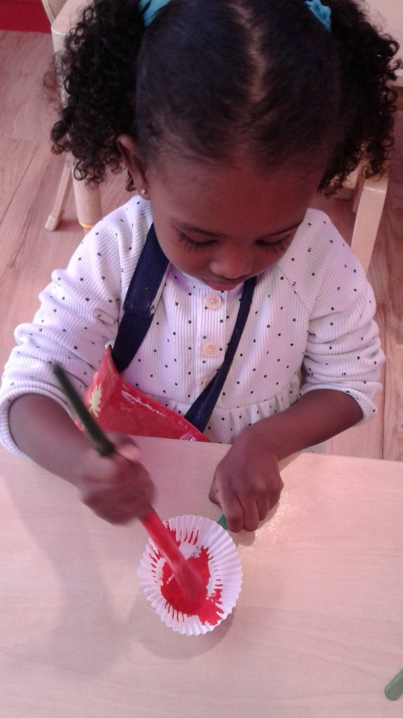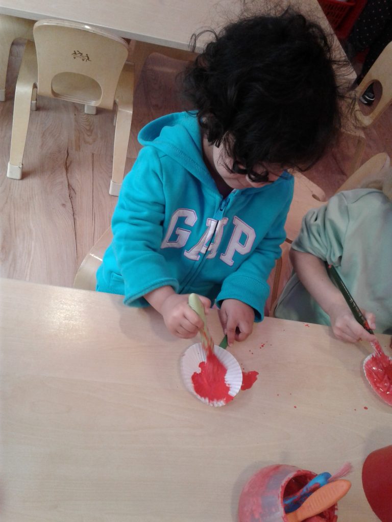 Great fine motor skills were used in this activity from gluing the lollypop stick on to focusing on getting the paint on the cupcake!