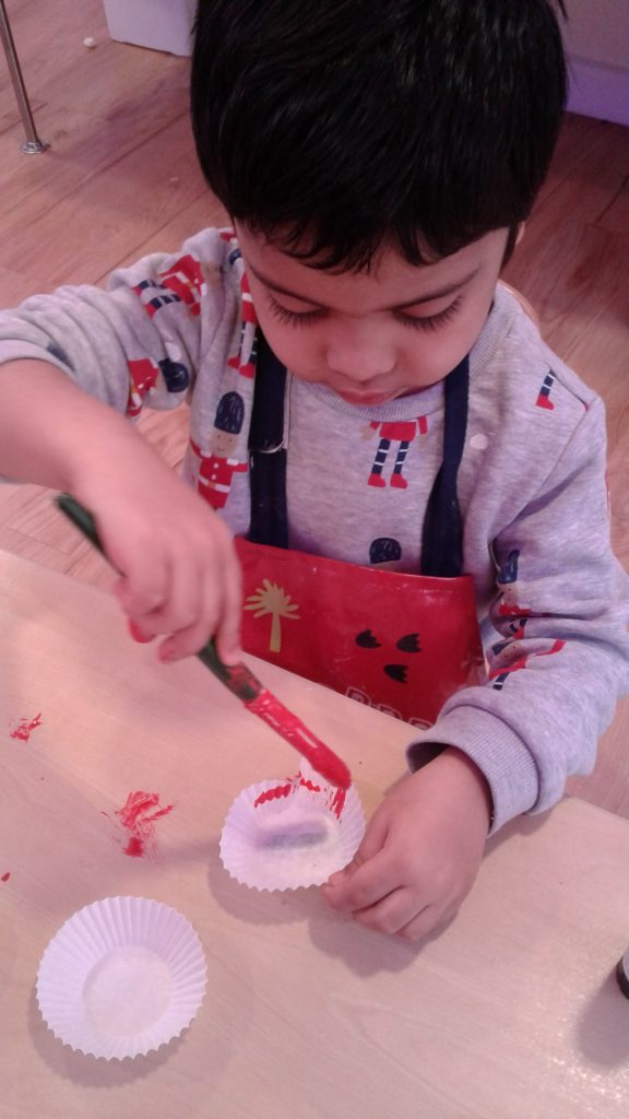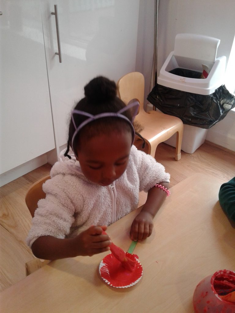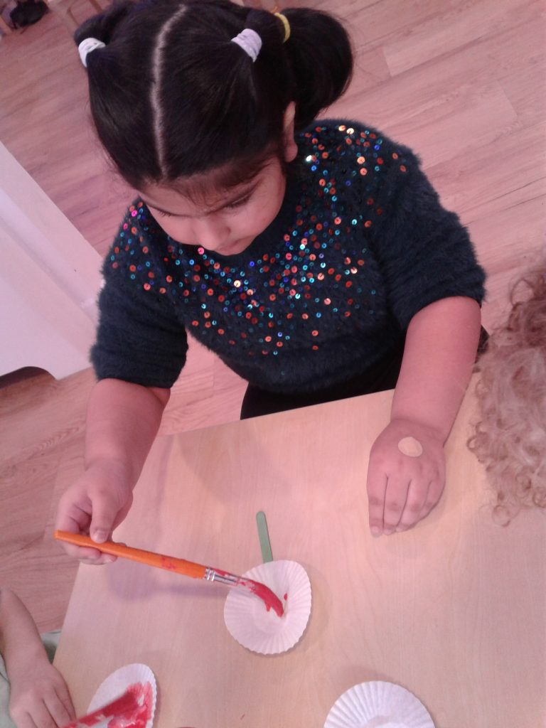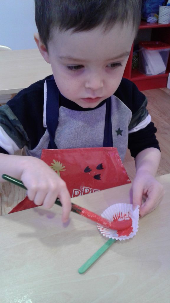 The Early Years’ children at Leicester were also busy decorating poppies as part of their activities for Remembrance Day. They were able to assemble the poppy with lollypop sticks and attach it to their cupcake holder!