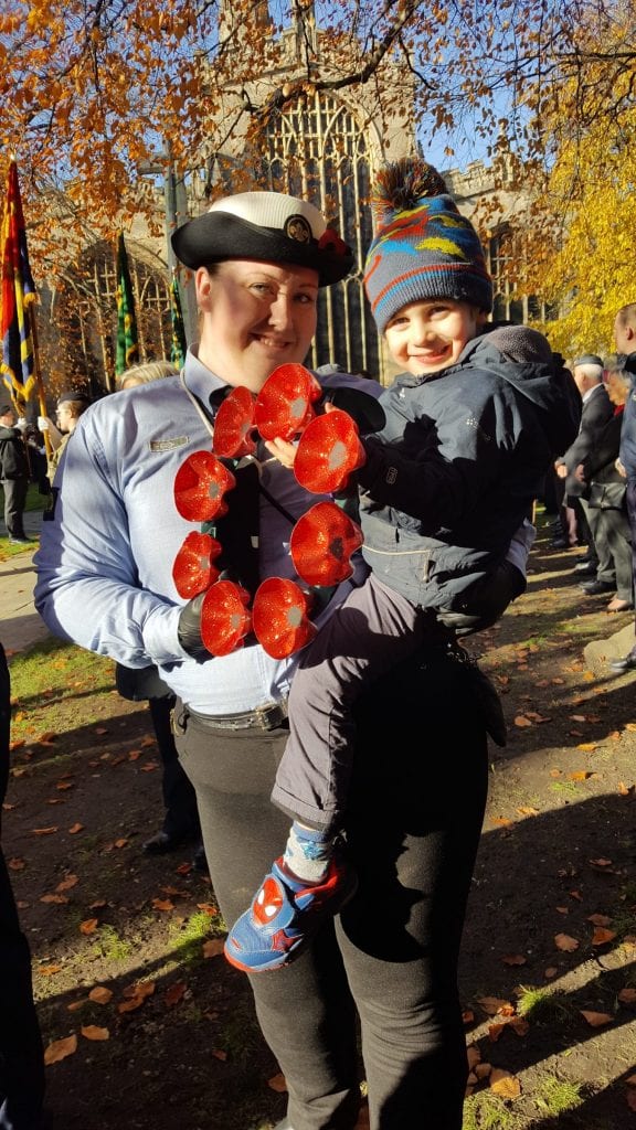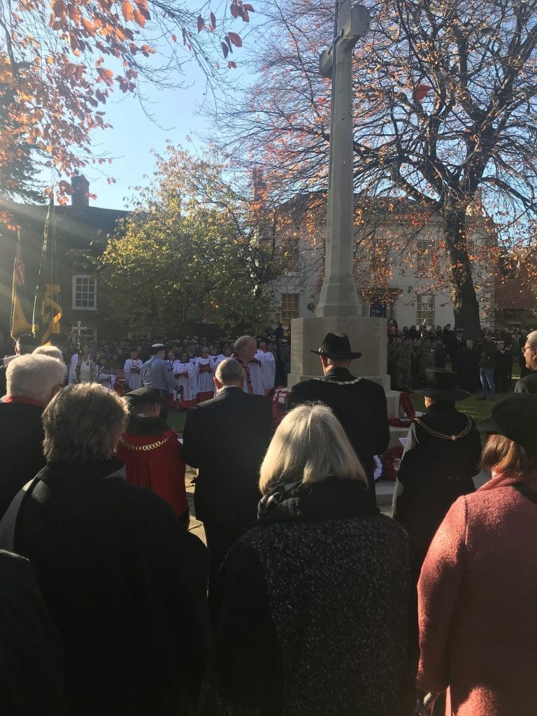 Miss Imogen ,who is a sea scout, takes part in Newark’s ceremony every year. She met with Ethan, one of our early years, at the Cenotaph so they could proudly lay our wreath in front of hundreds of Newark’s residents.