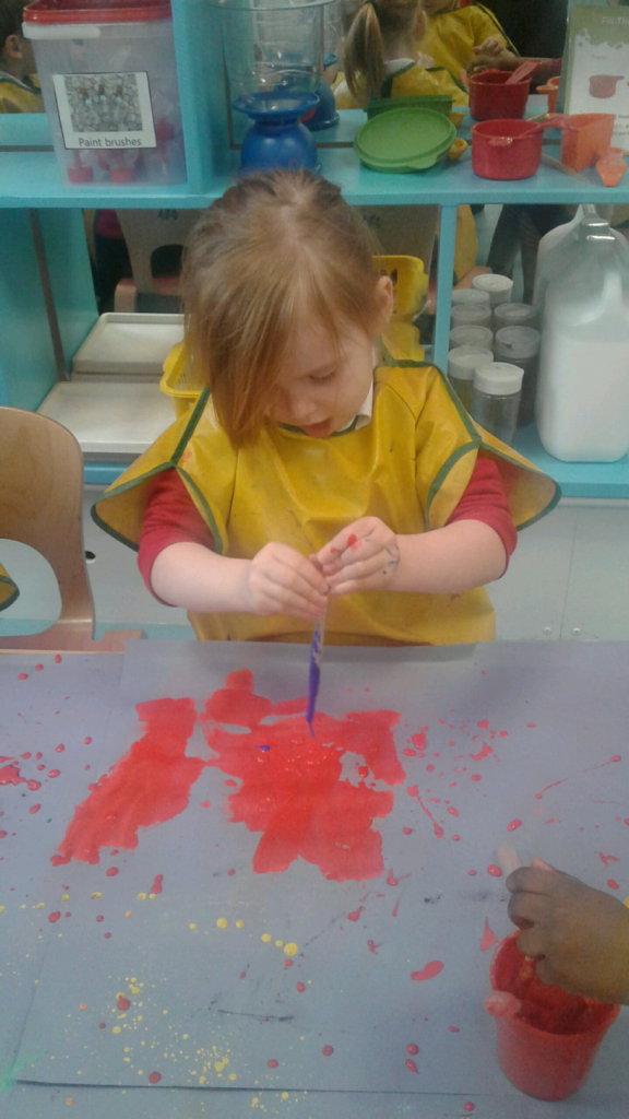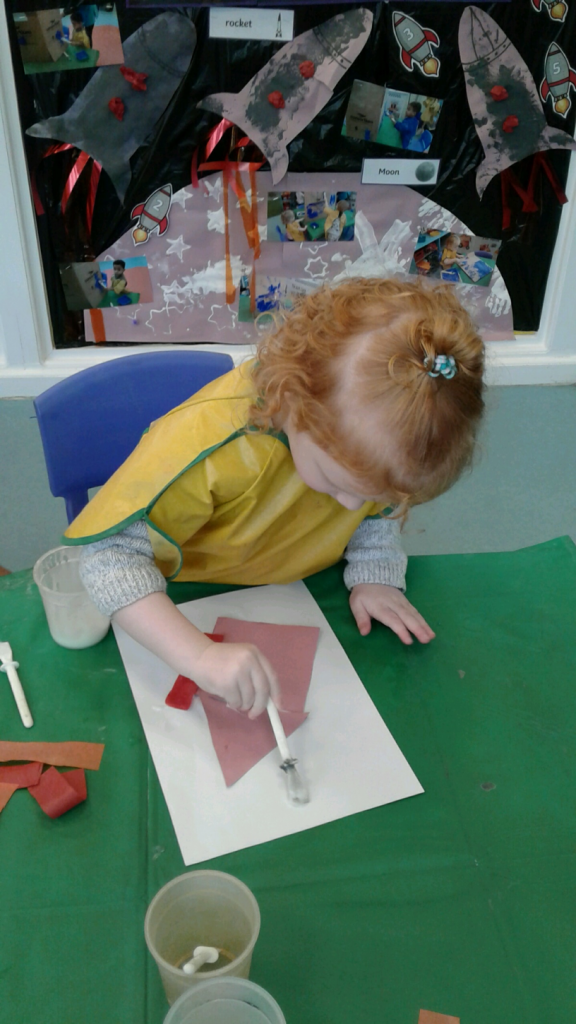 The children were very hands-on when they used pipettes to carefully drop paint and create their own aliens. Tactile experiences with space gloop and playdough planets led to chatter and fun as the children’s imaginations took off.