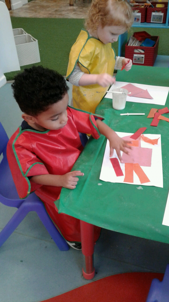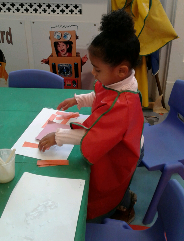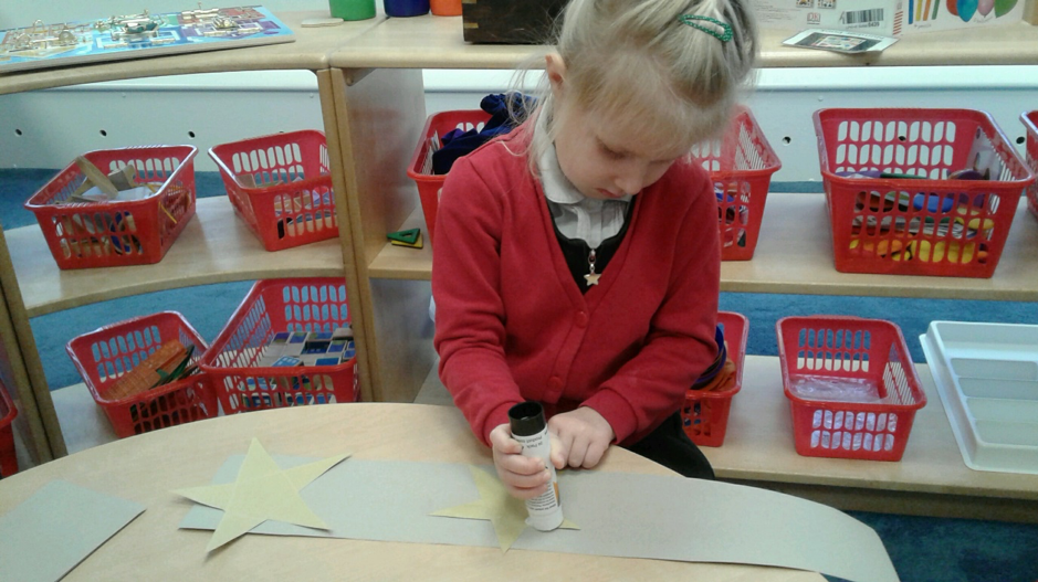 There were mathematical experiences with the children ordering and sticking according to size the stars they had previously cut out. More rockets were made using geometric shapes with the children learning the names of some of them.
