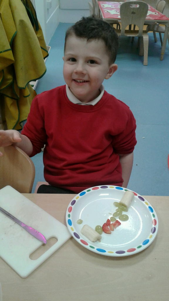 Of course, when possible we love bringing food into our topics and our ‘Space’ theme was no exception. Our fruity rockets had everyone placing the fruit carefully on the plate as they created their design. The rockets made fabulous space food, greatly enjoyed by our hungry young astronauts!