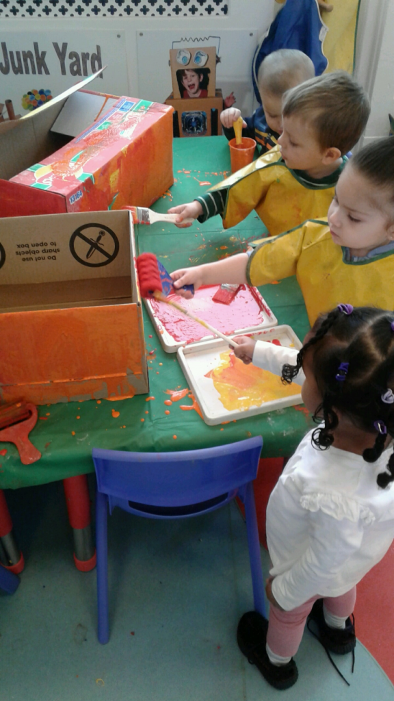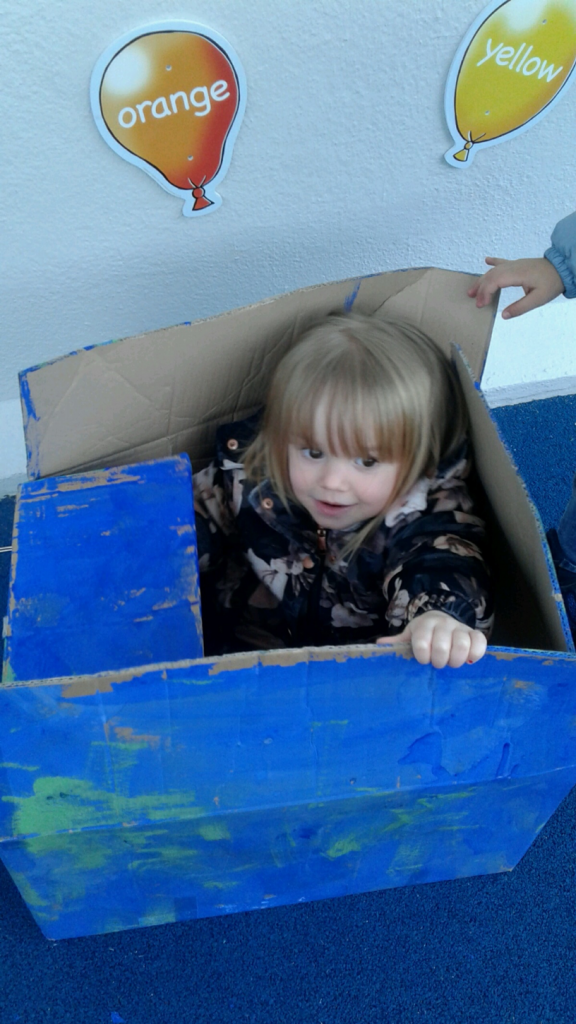 In the construction area they made small rockets using an assortment of resources. Then large-scale box modelling gave the children the opportunity to paint their big spacecraft before jetting off on their space adventures. There was some great team work as the children worked together to apply the paint.