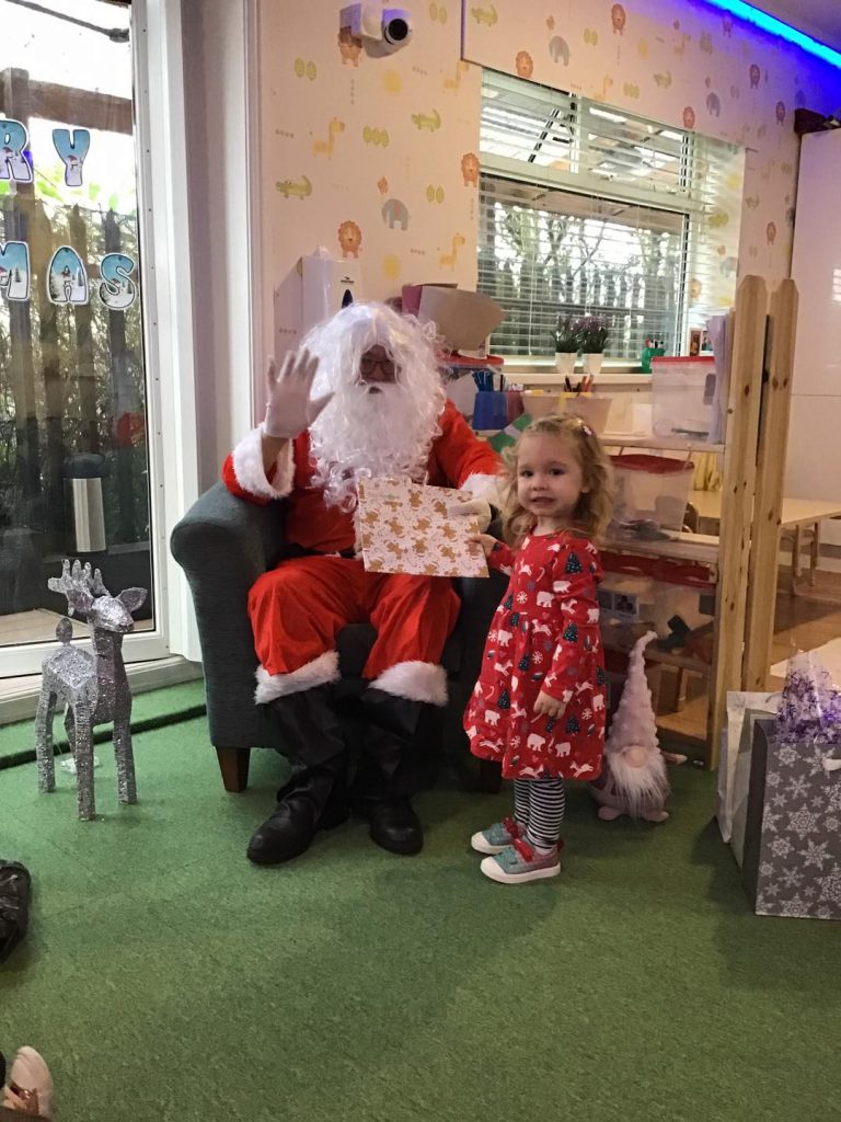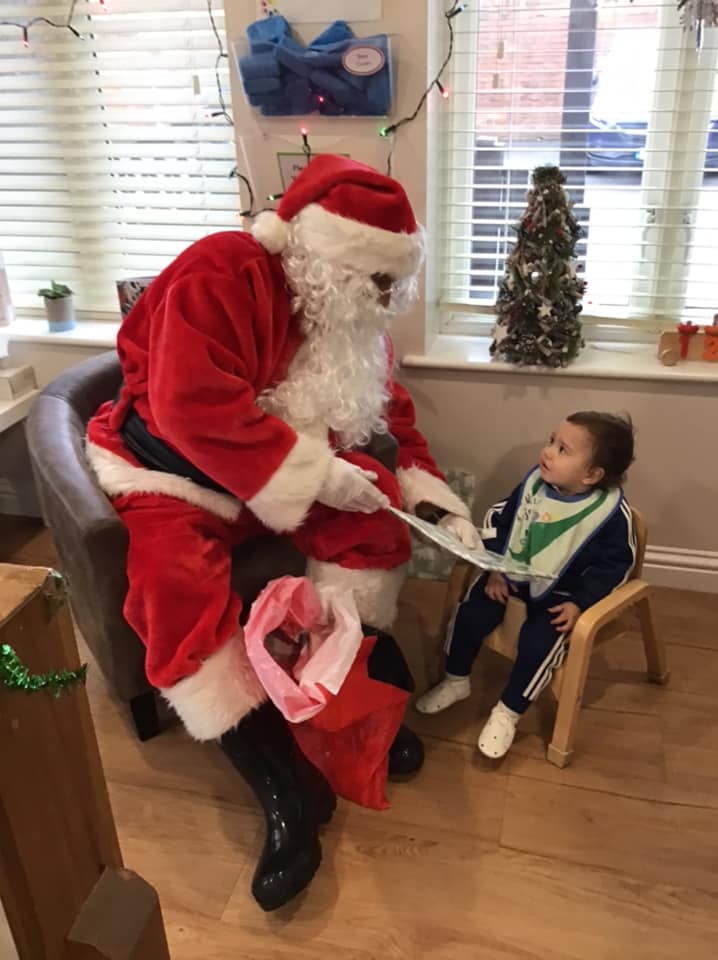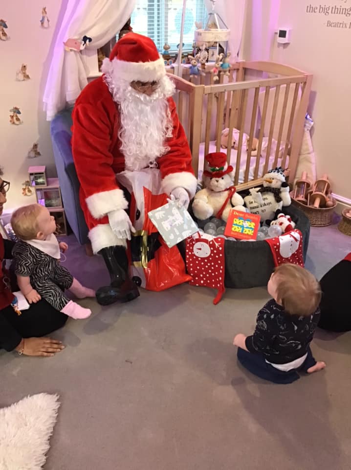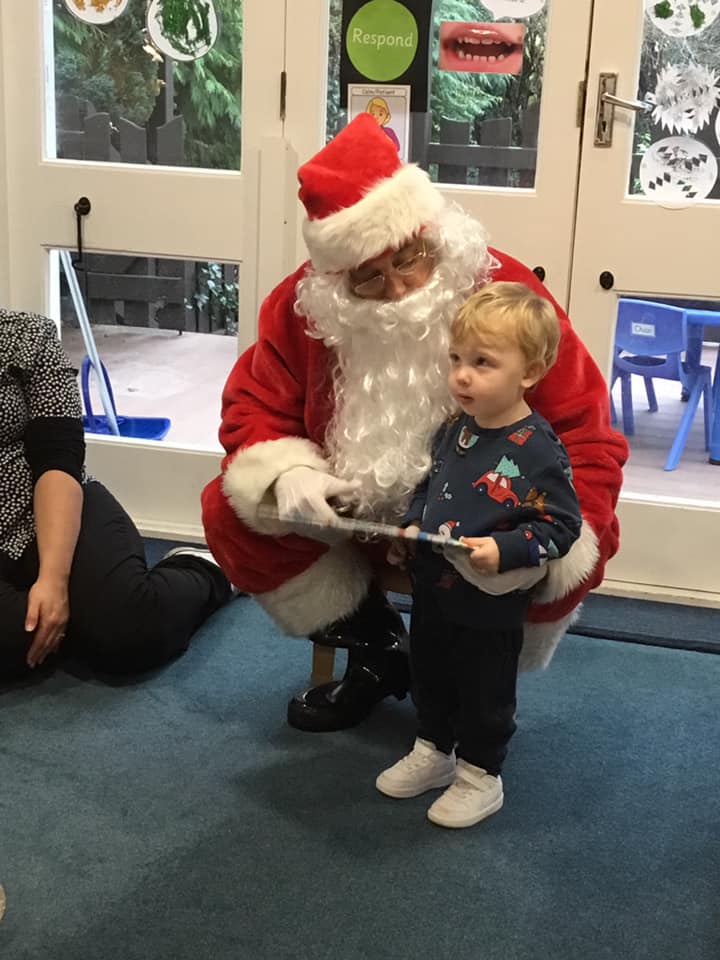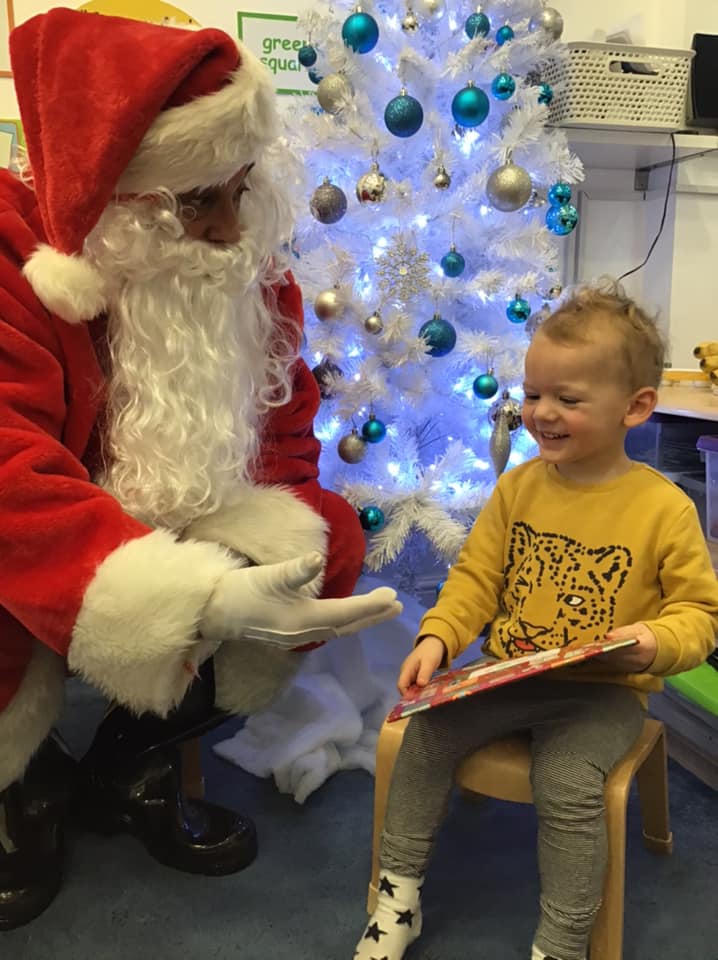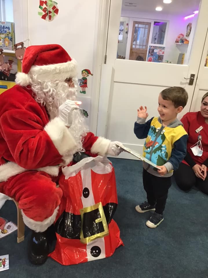 Ho Ho Ho! Isn’t Santa marvellous! Not only is he busy preparing to deliver presents on Christmas Eve, he’s also found time to pop into our nurseries to spread some Christmas cheer. Delighting the children with his visit, he gave each of them an early Christmas present and listened to their wish list for the big day.