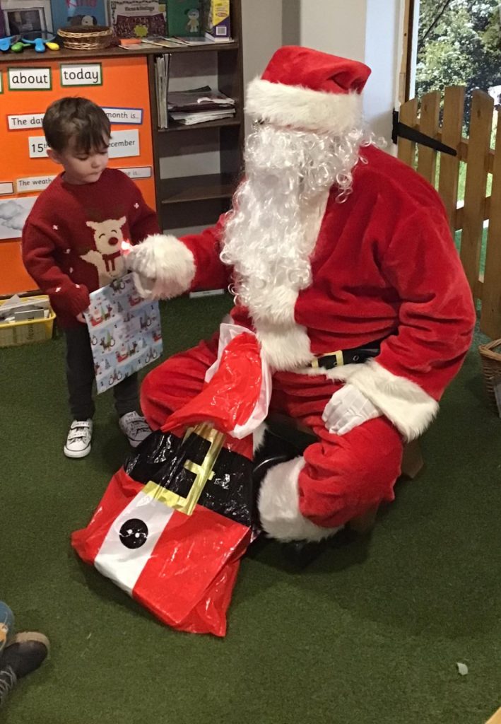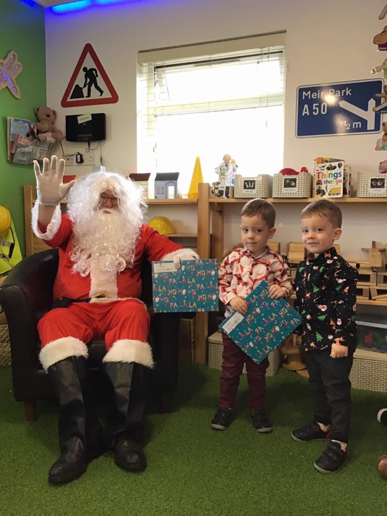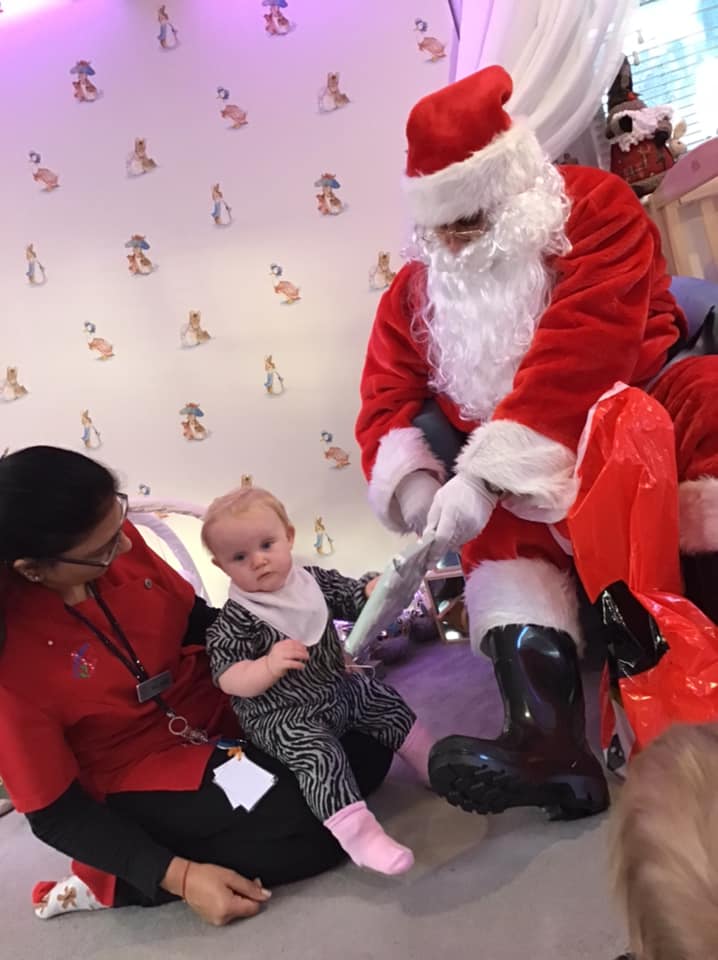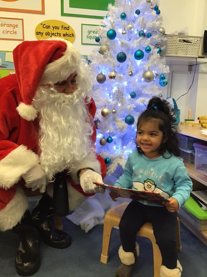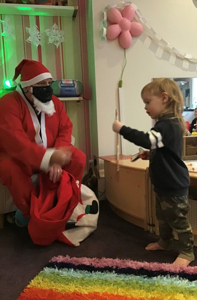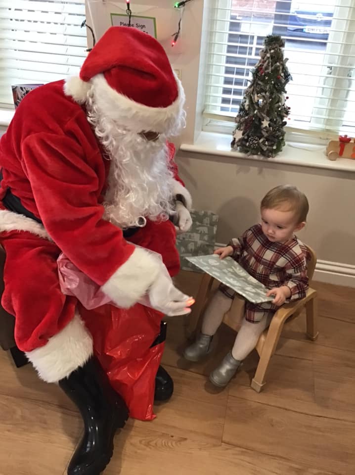 Ho Ho Ho! Isn’t Santa marvellous! Not only is he busy preparing to deliver presents on Christmas Eve, he’s also found time to pop into our nurseries to spread some Christmas cheer. Delighting the children with his visit, he gave each of them an early Christmas present and listened to their wish list for the big day.
