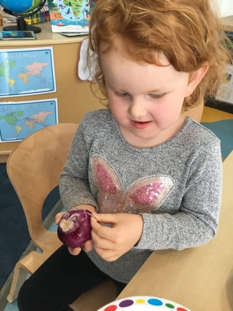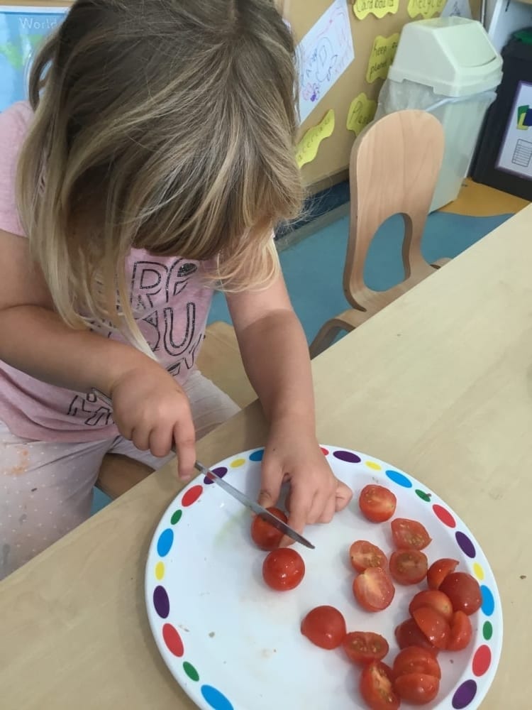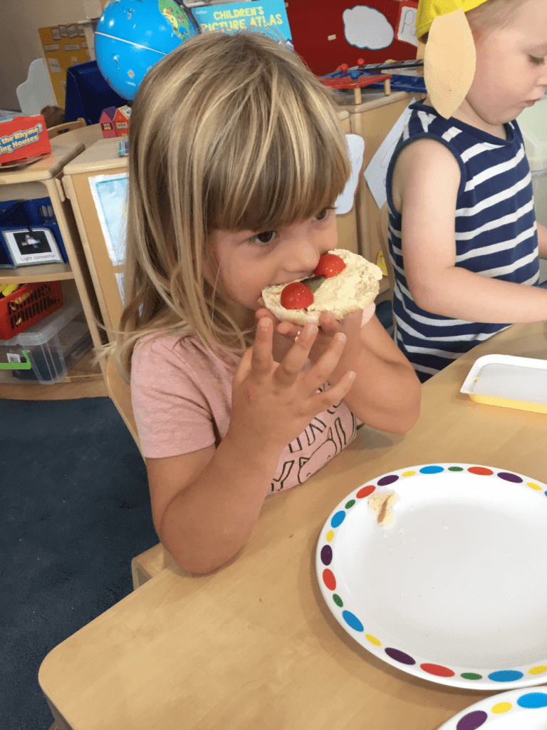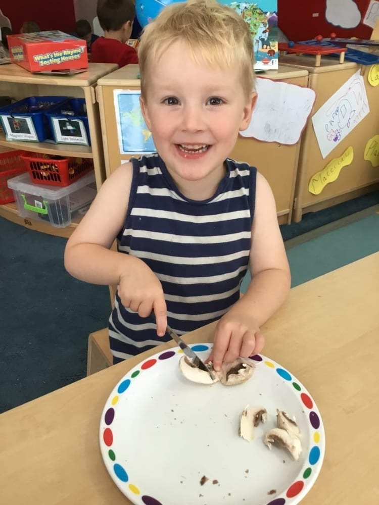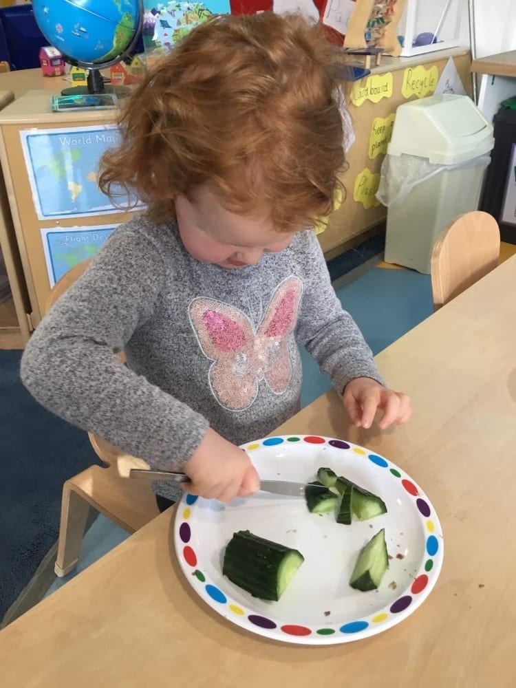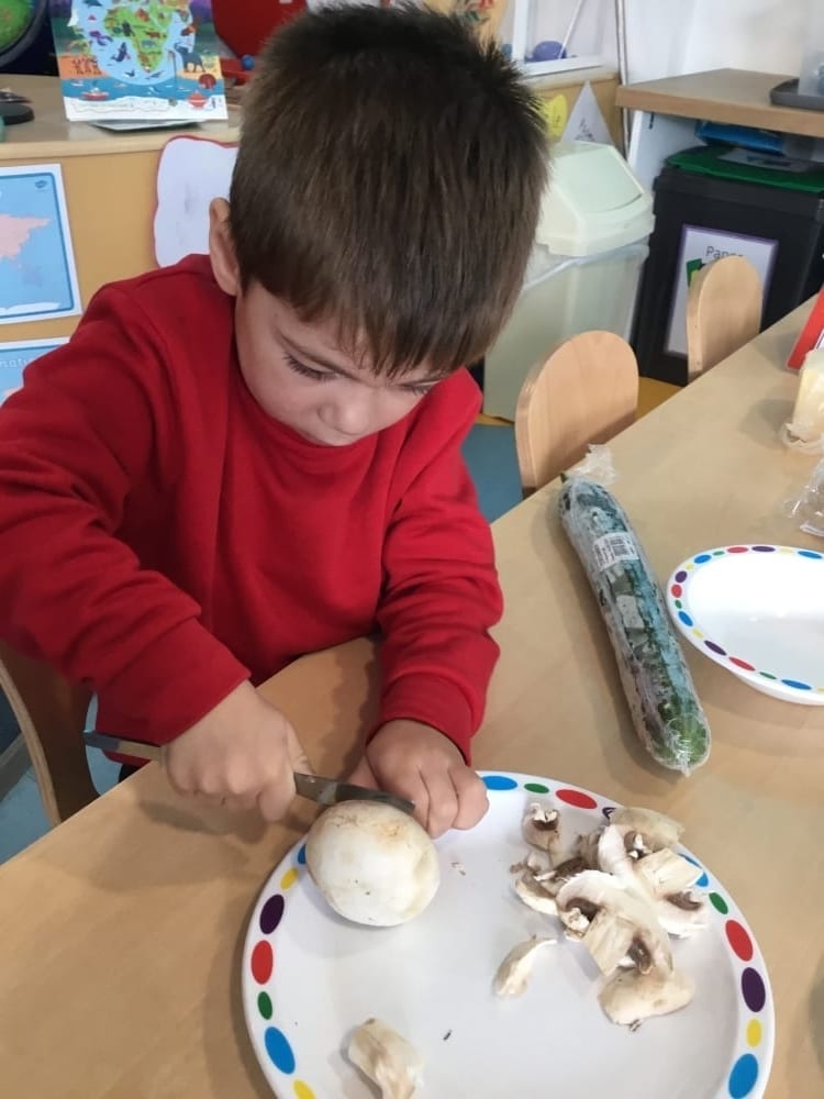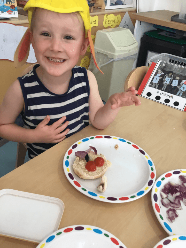 One of their favourites was working with Miss Lucy to make edible scarecrow faces using different vegetables. The children were encouraged to carefully cut up the vegetables themselves. They used their different senses to look, smell and taste. They then had even more fun eating the end result!