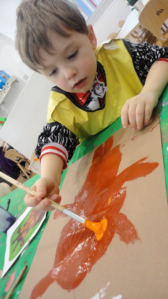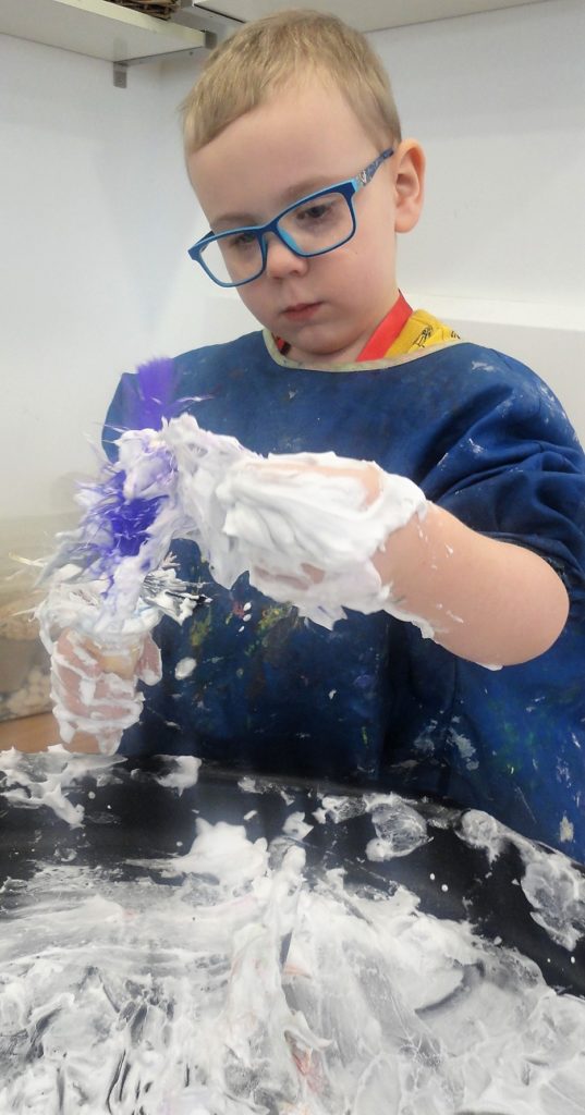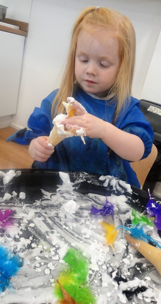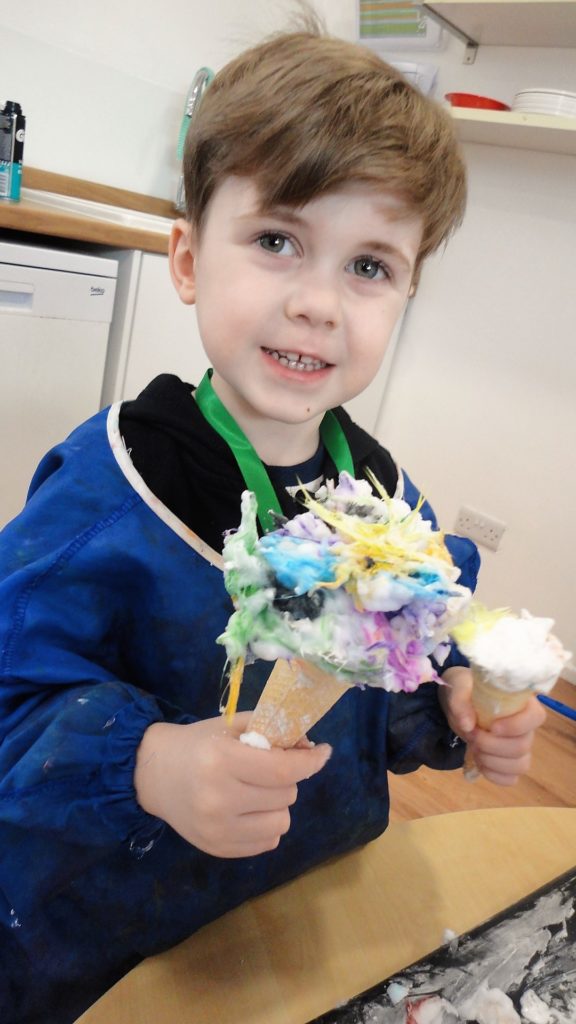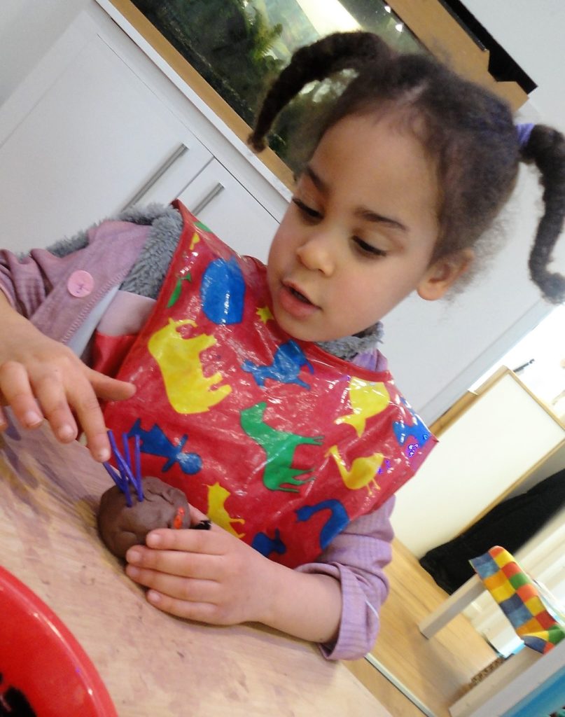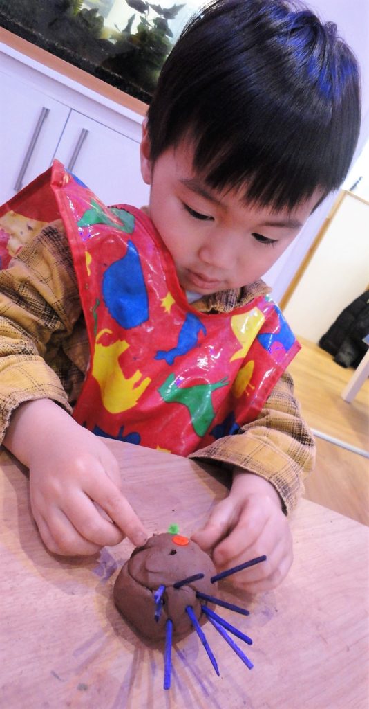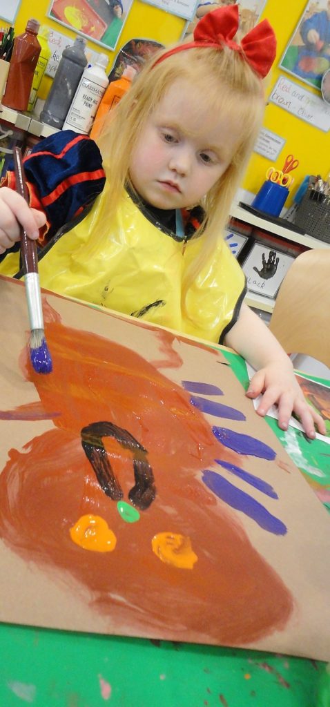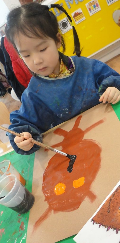 They participated in a variety of activities related to the story including using props and puppets to re-tell the story, painting the Gruffalo, making Gruffalo crumble and owl ice cream trays and making their own Gruffalo’s from clay.