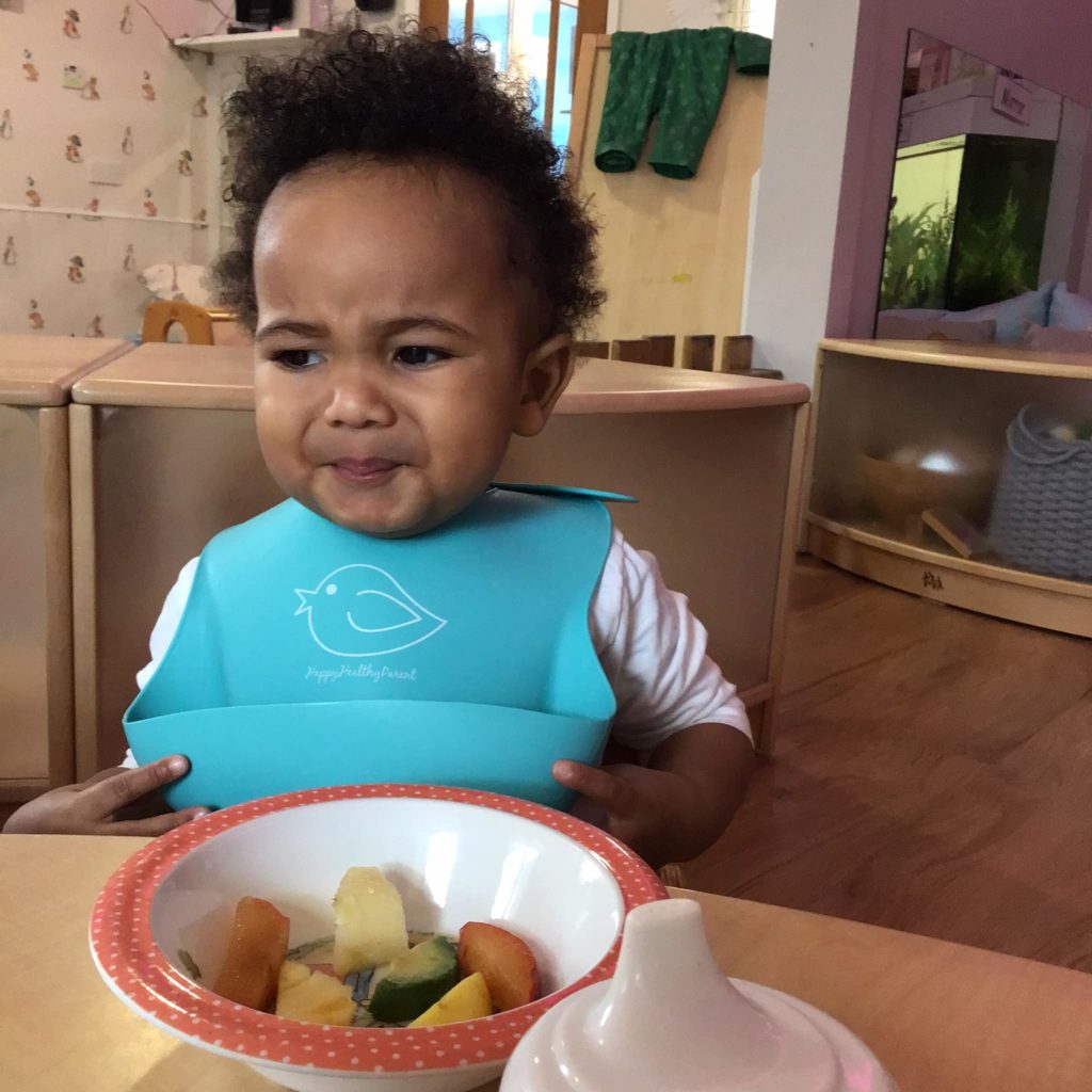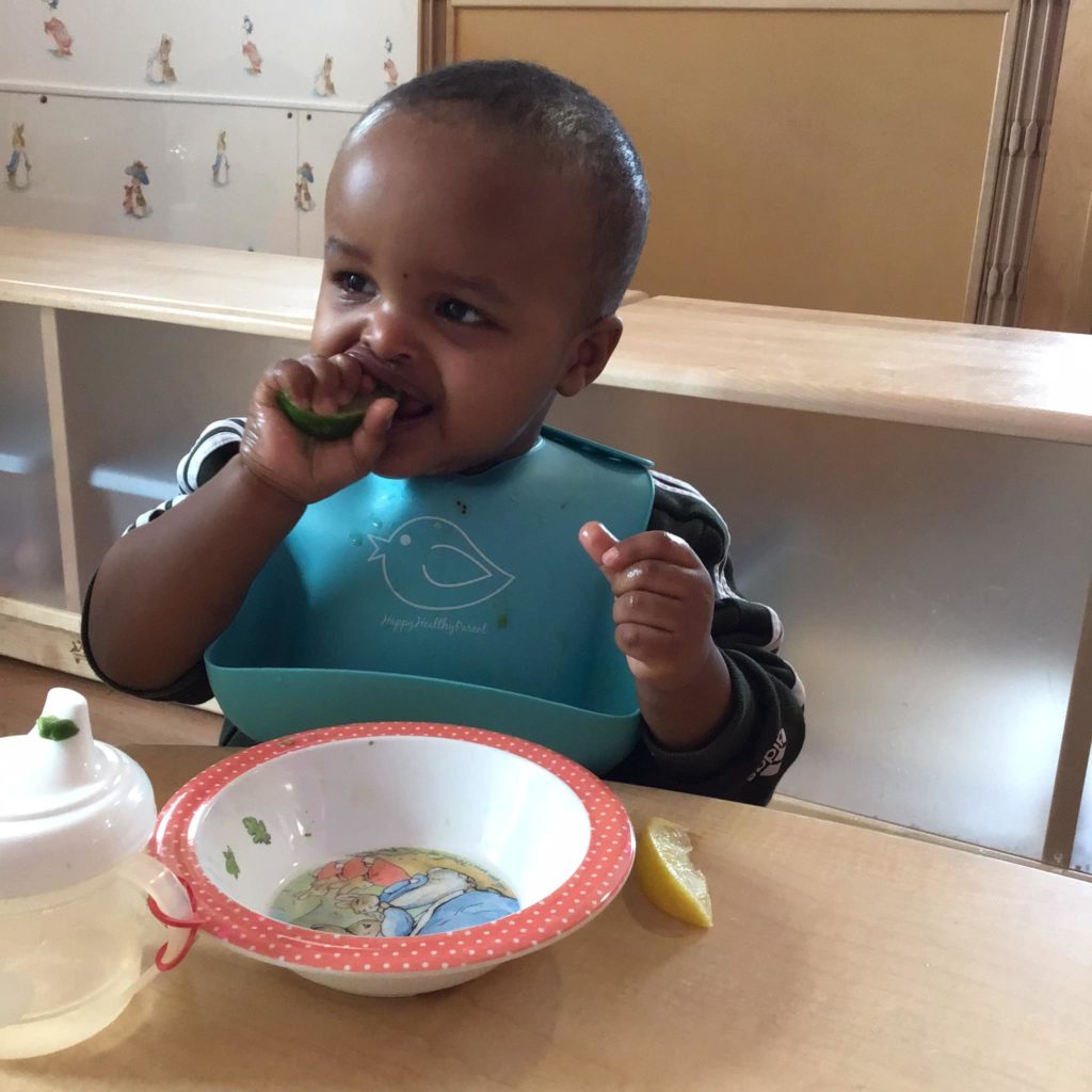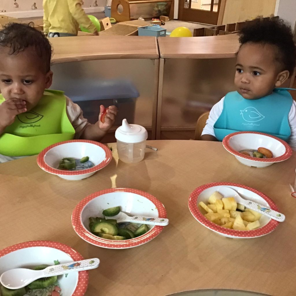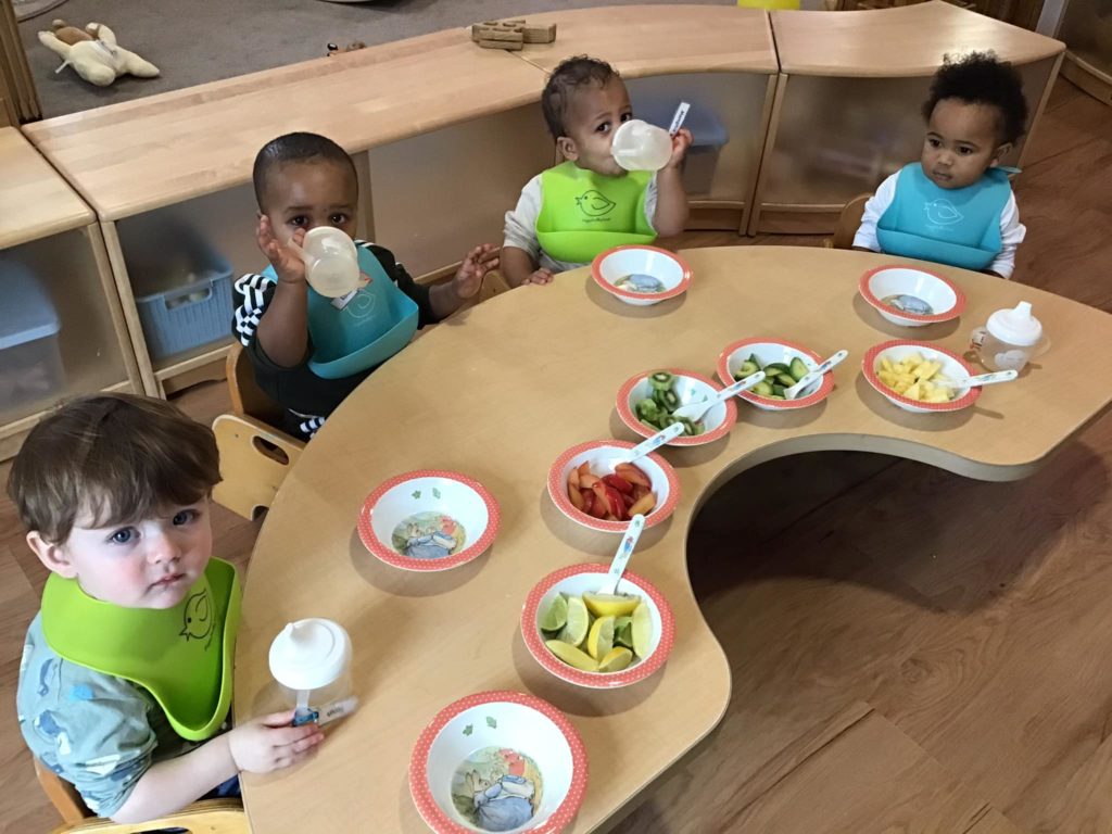 In the baby room the children tasted various fruits including avocado, pineapple, kiwi, peaches, lemon and limes! Their faces when they tasted the sour fruits say it all! Well done for having a go!