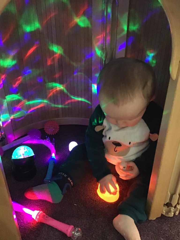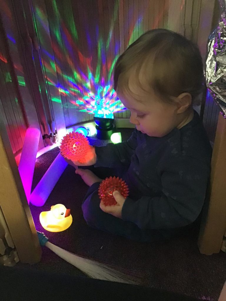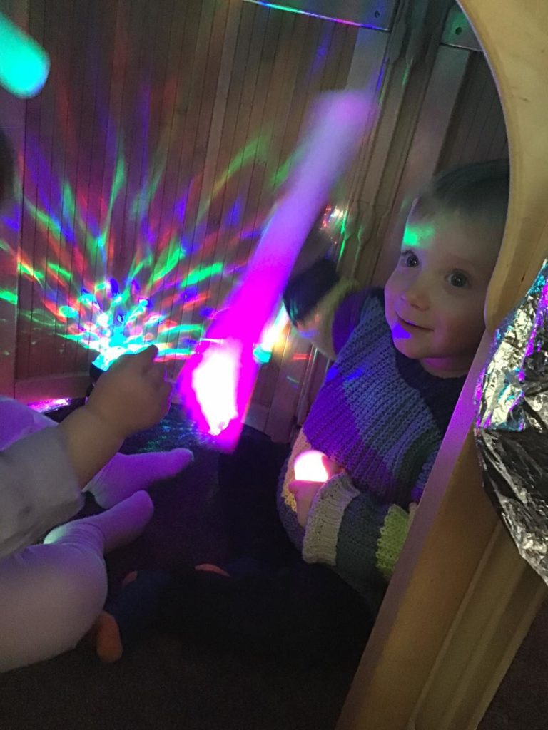 There was all round delight however at Main Street as the under 2s explored objects that emitted colourful lights in their den. Curiosity, mixed with wonder and awe captured the interest of our young explorers.