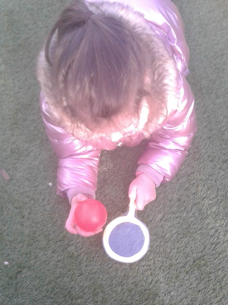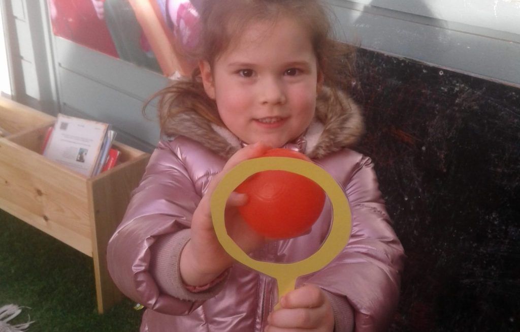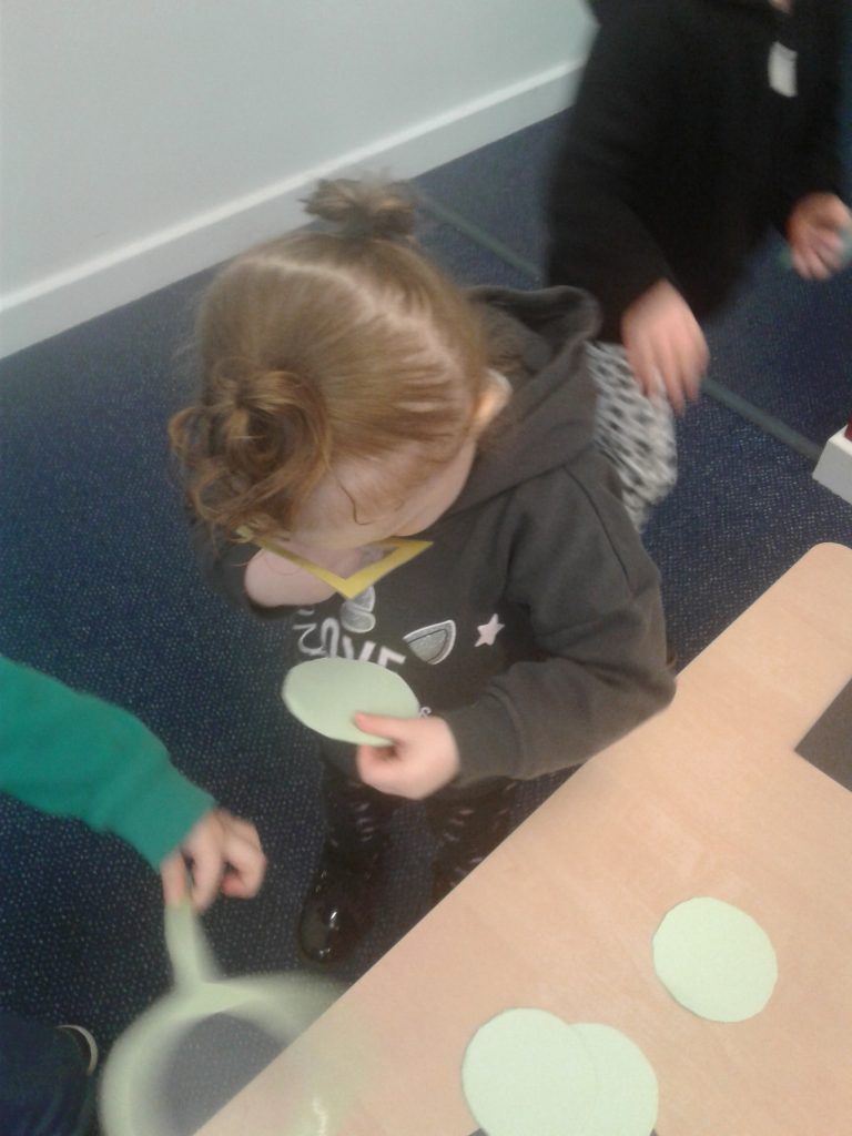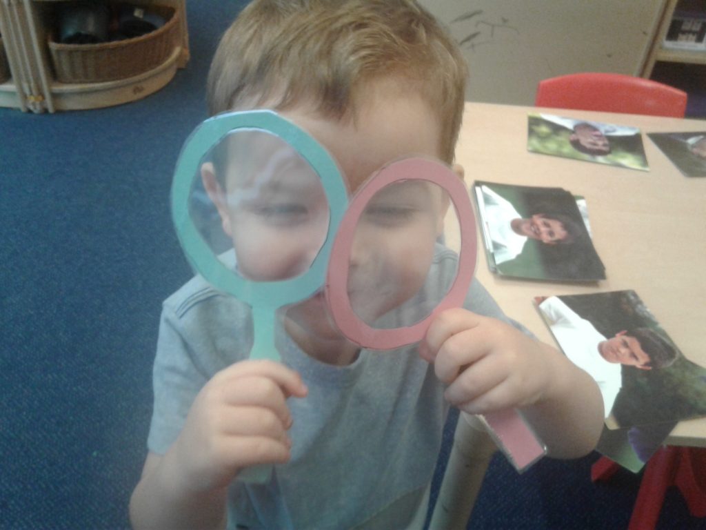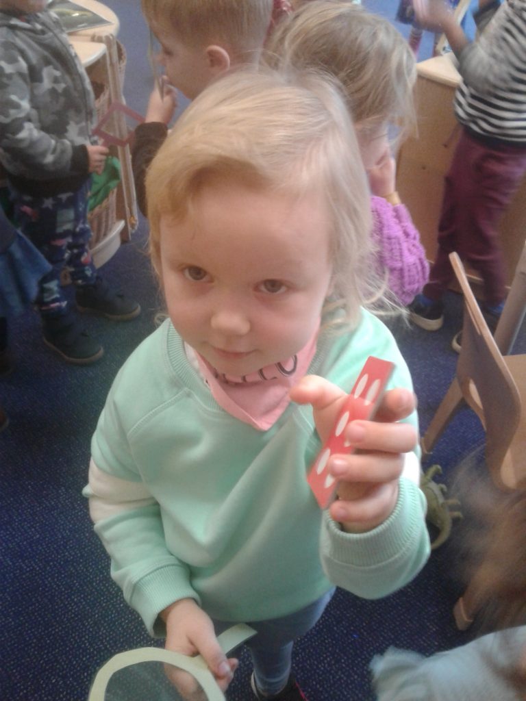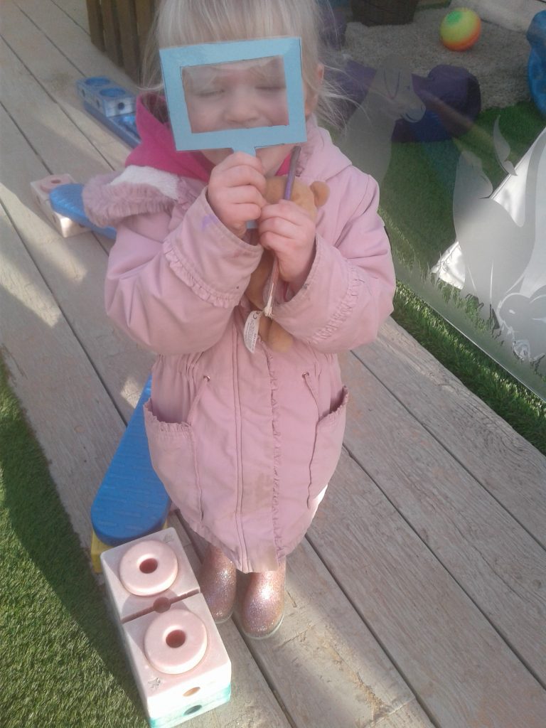 The children made their own shape glasses to look through and then set off to hunt matching shapes inside and out. They had lots of fun and learned some new shapes on the way!