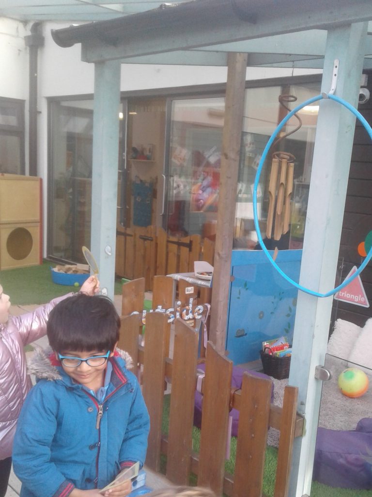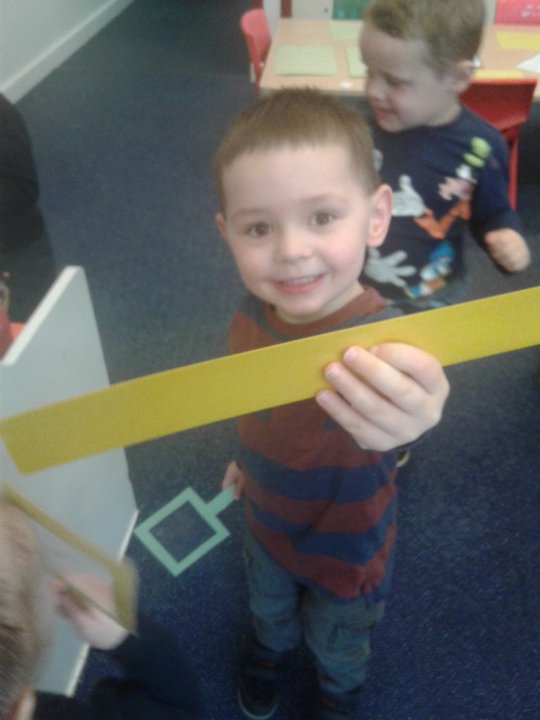 Laurence loved the ‘long rectangle’ he found and Mayaan said that the big hoop was the same colour as his glasses! Great work shape hunters!