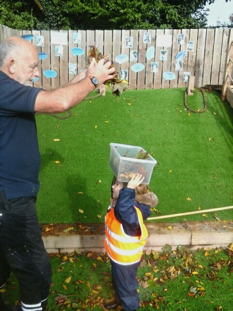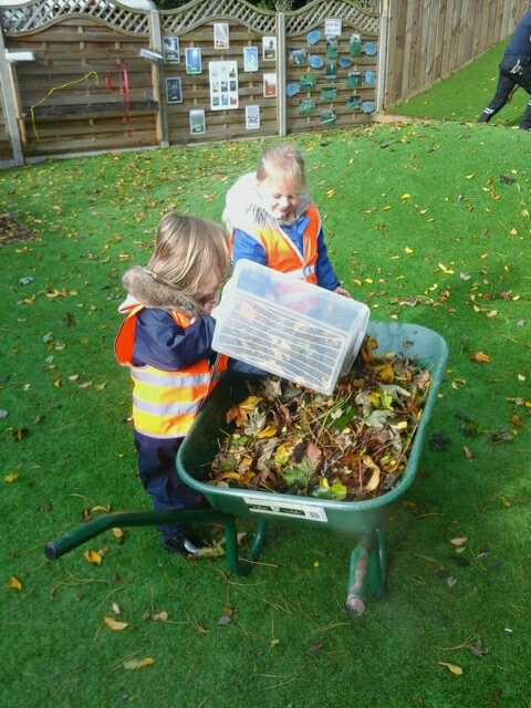It was raining leaves at Acorns and our grass was soon covered so the children decided to lend Mr Peter a hand and collect this golden treasure and pop it in the wheelbarrow. Everyone was so busy and the wheelbarrow was soon overflowing.